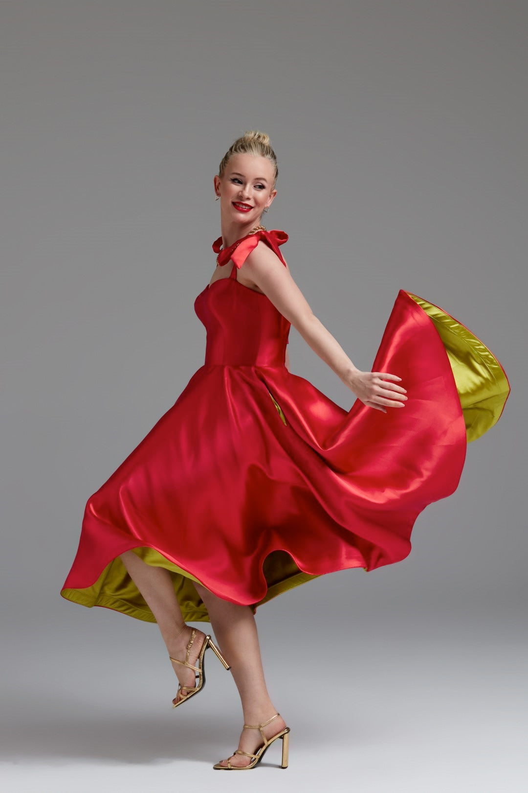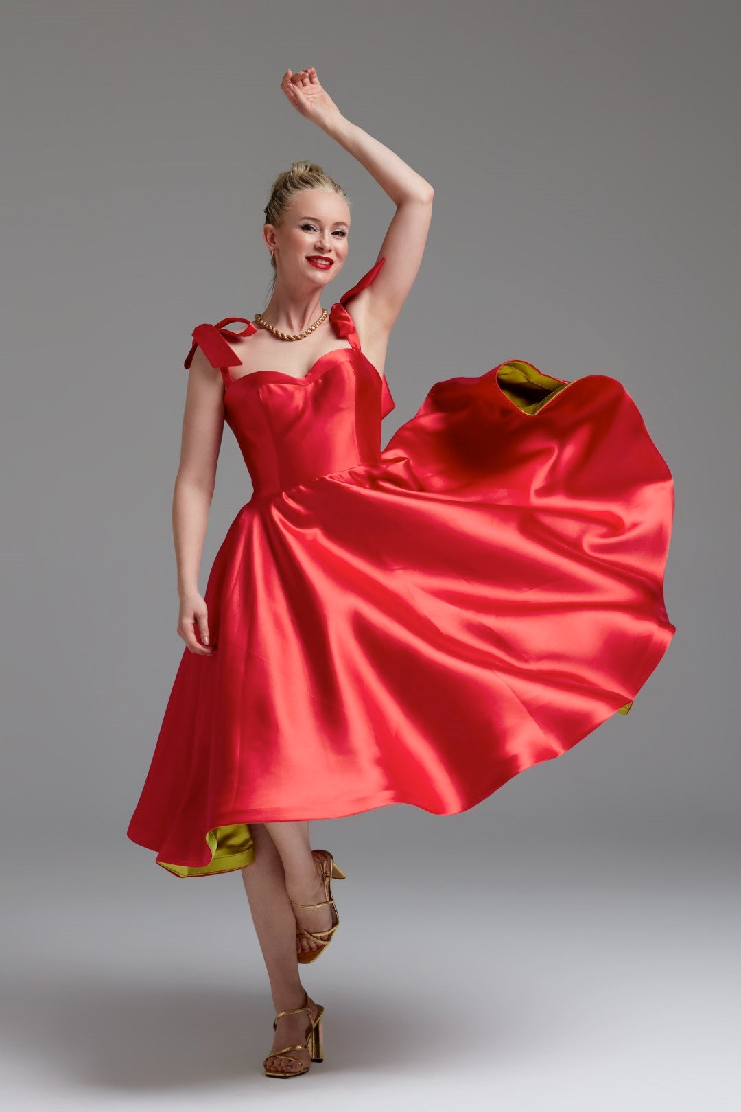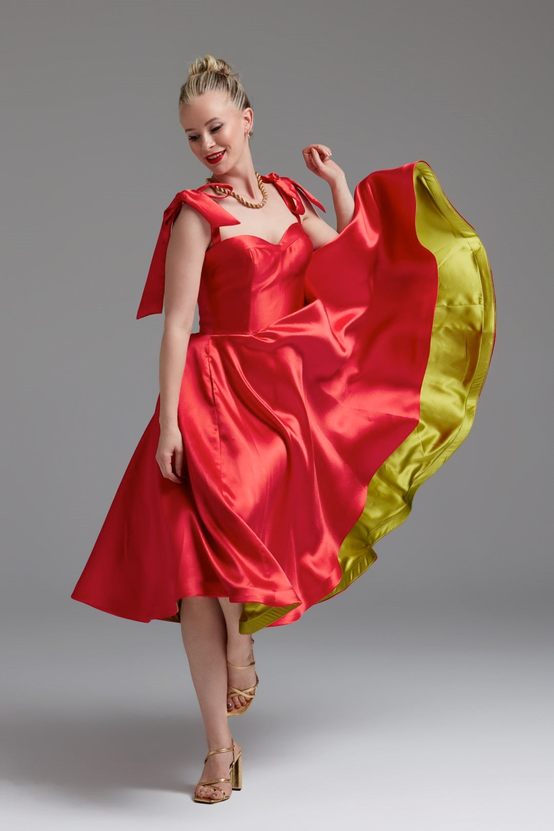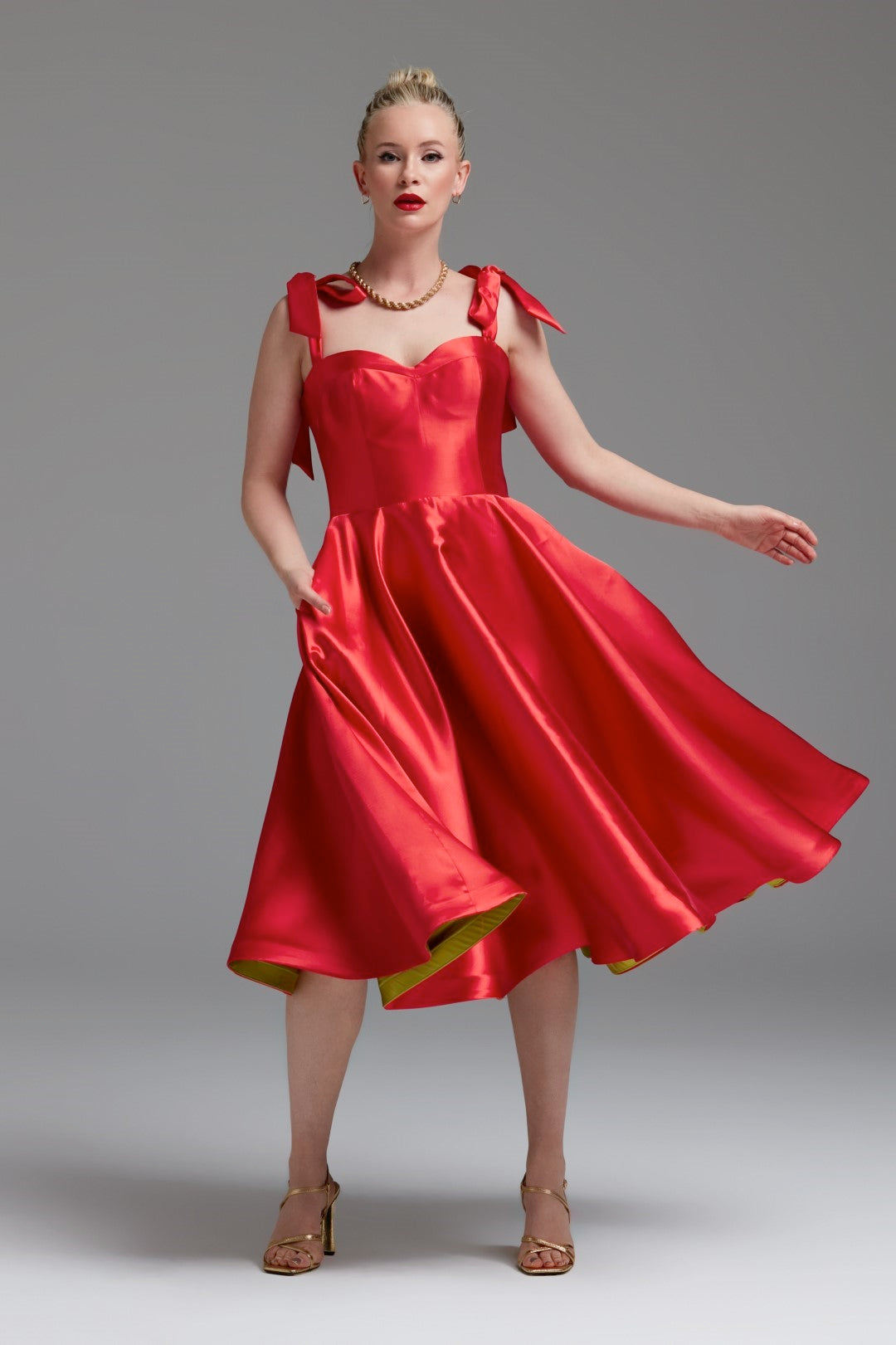Cutest Ribbon Kurdele Detaylı Kalp Yaka Midi Elbise Kırmızı