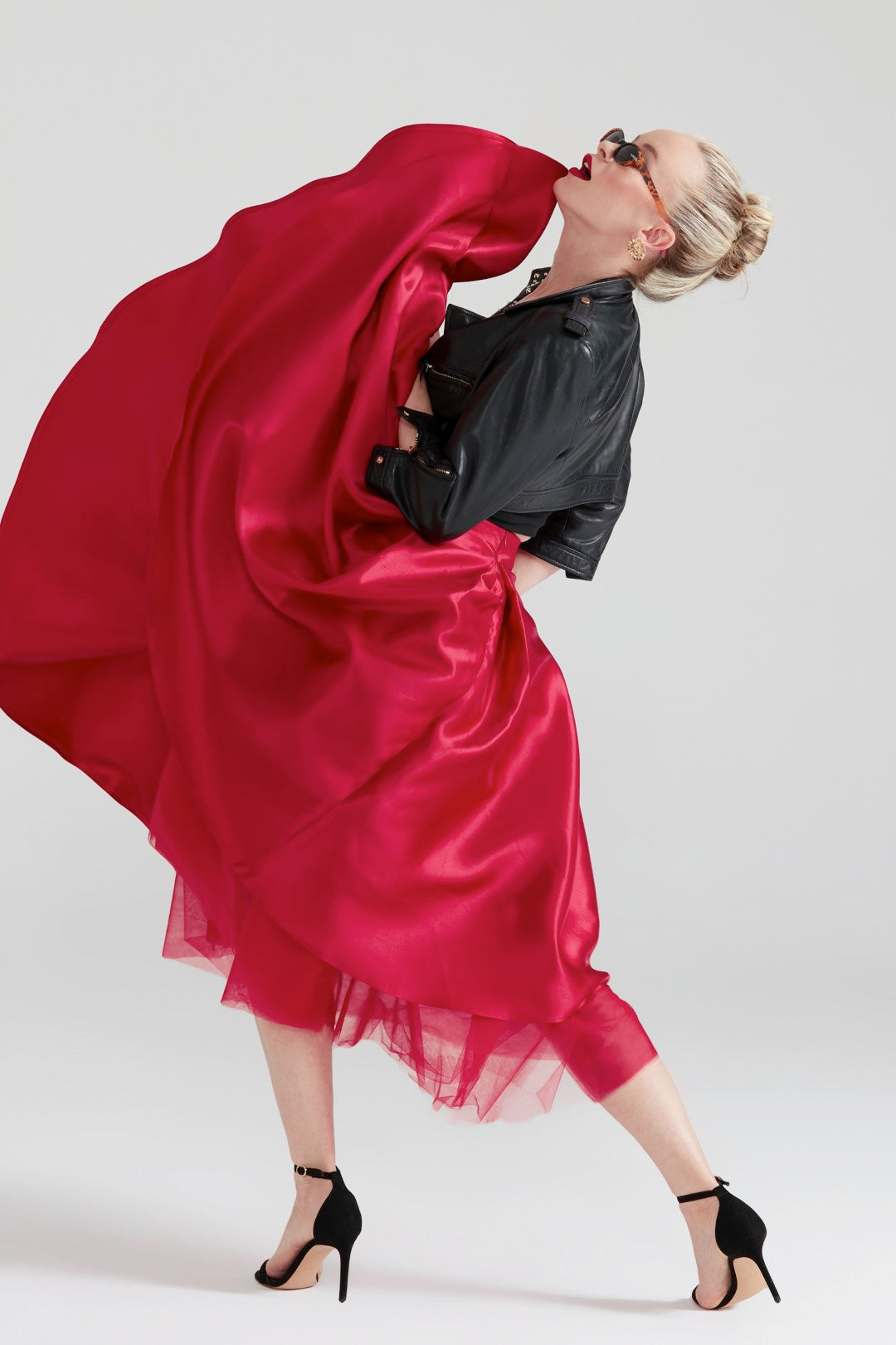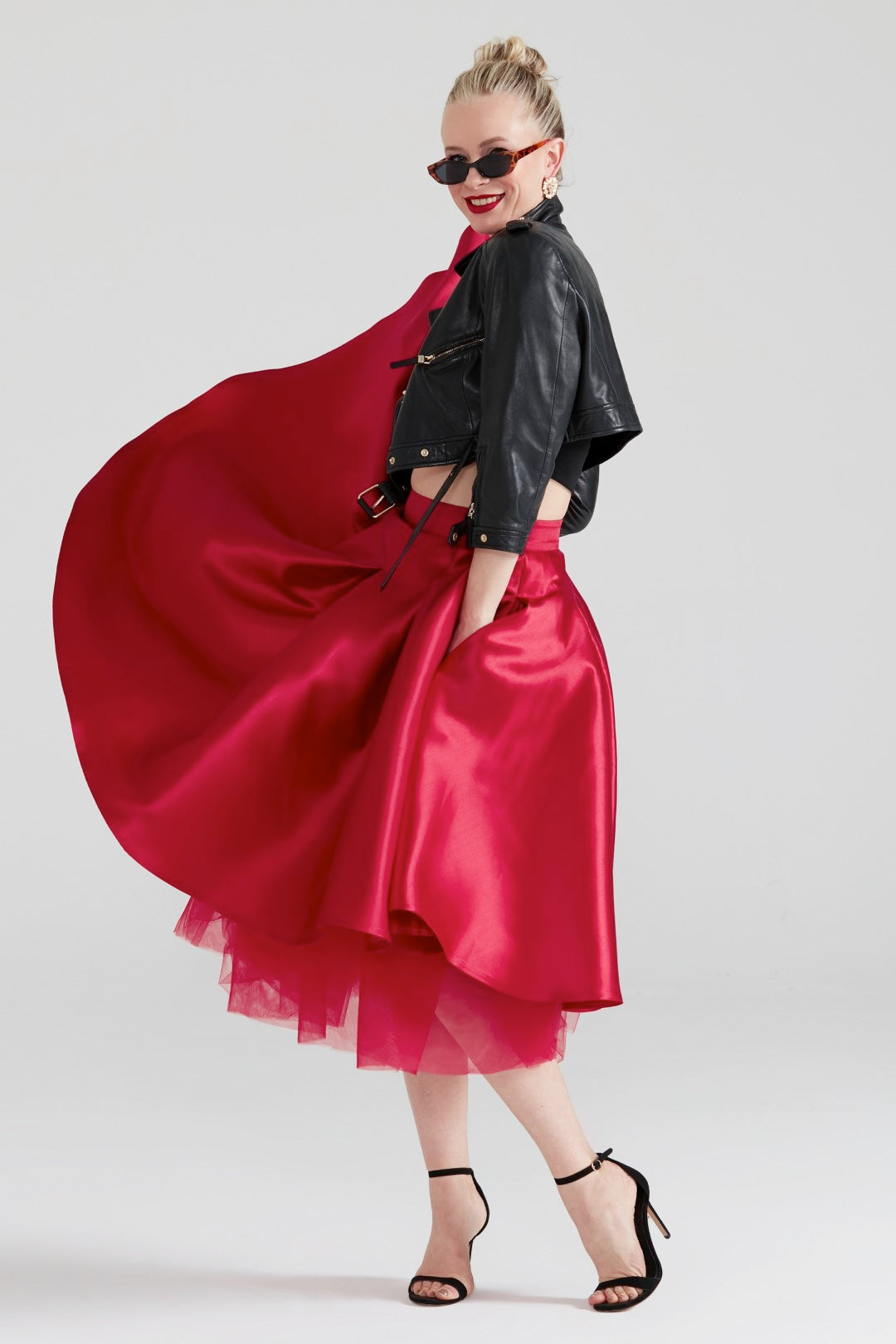 Fever Pileli Tül Detaylı Midi Etek Kırmızı