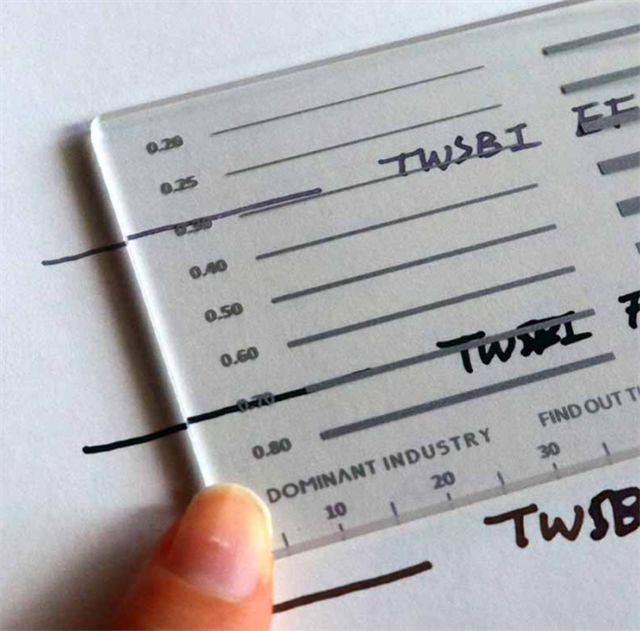 Şeffaf akrilik yüzey üzerine ince bir işçilikle basılan gümüş ölçüm çizgileri, her ışıkta net ve kolay okunur. Parmak izi direnci sayesinde uzun süre temiz ve profesyonel görünümünü korur. Aynı zamanda mini cetvel işlevi görerek ekstra kullanım kolaylığı sunar.
