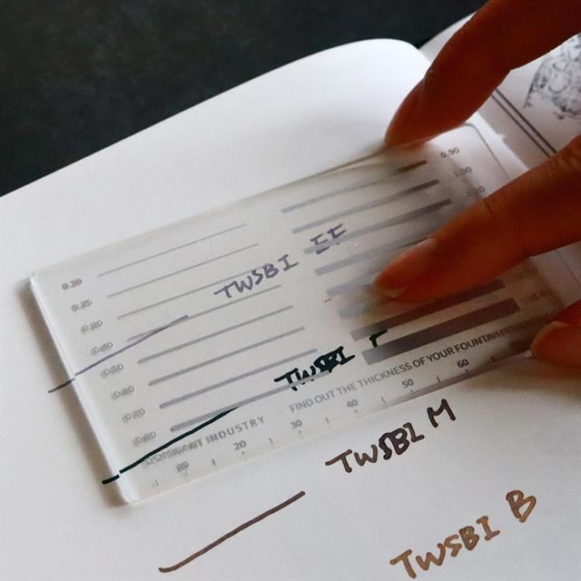 MM PAD Dolma Kalem Ucu Ölçer, dolma kalem ucunuzun kalınlığını en doğru şekilde belirlemenizi sağlayan özel bir ölçüm aracıdır. Hem ucun gerçek milimetrik kalınlığını hem de yazı karakterinizin sayfaya bıraktığı gerçek çizgi kalınlığını yüksek hassasiyetle ölçer.
