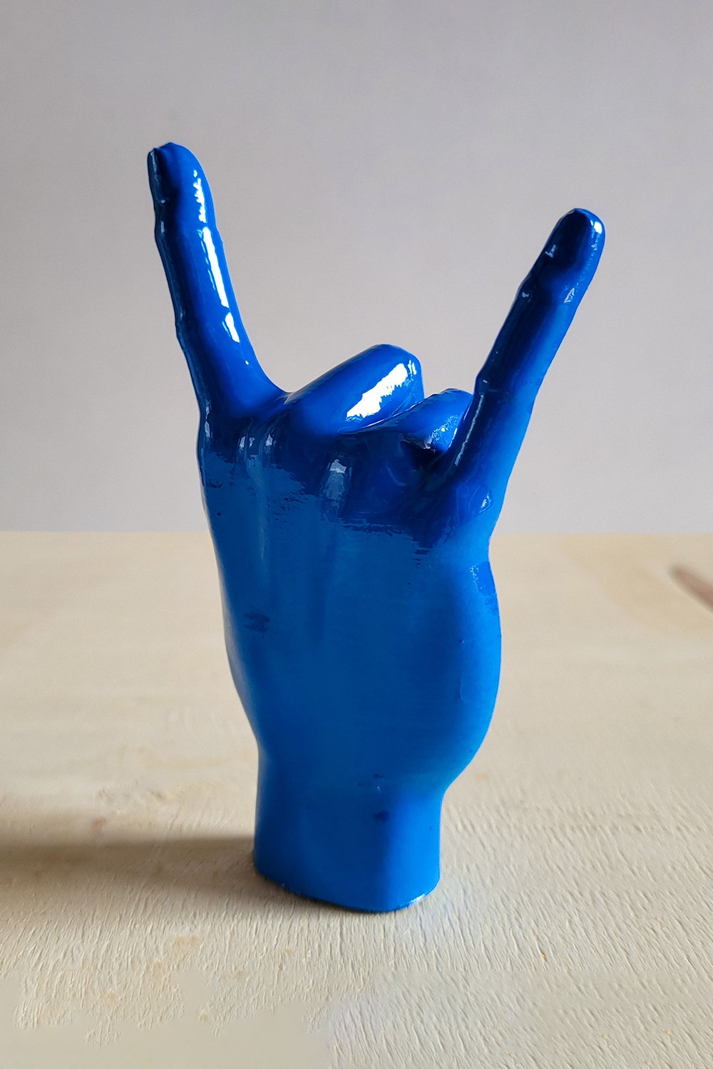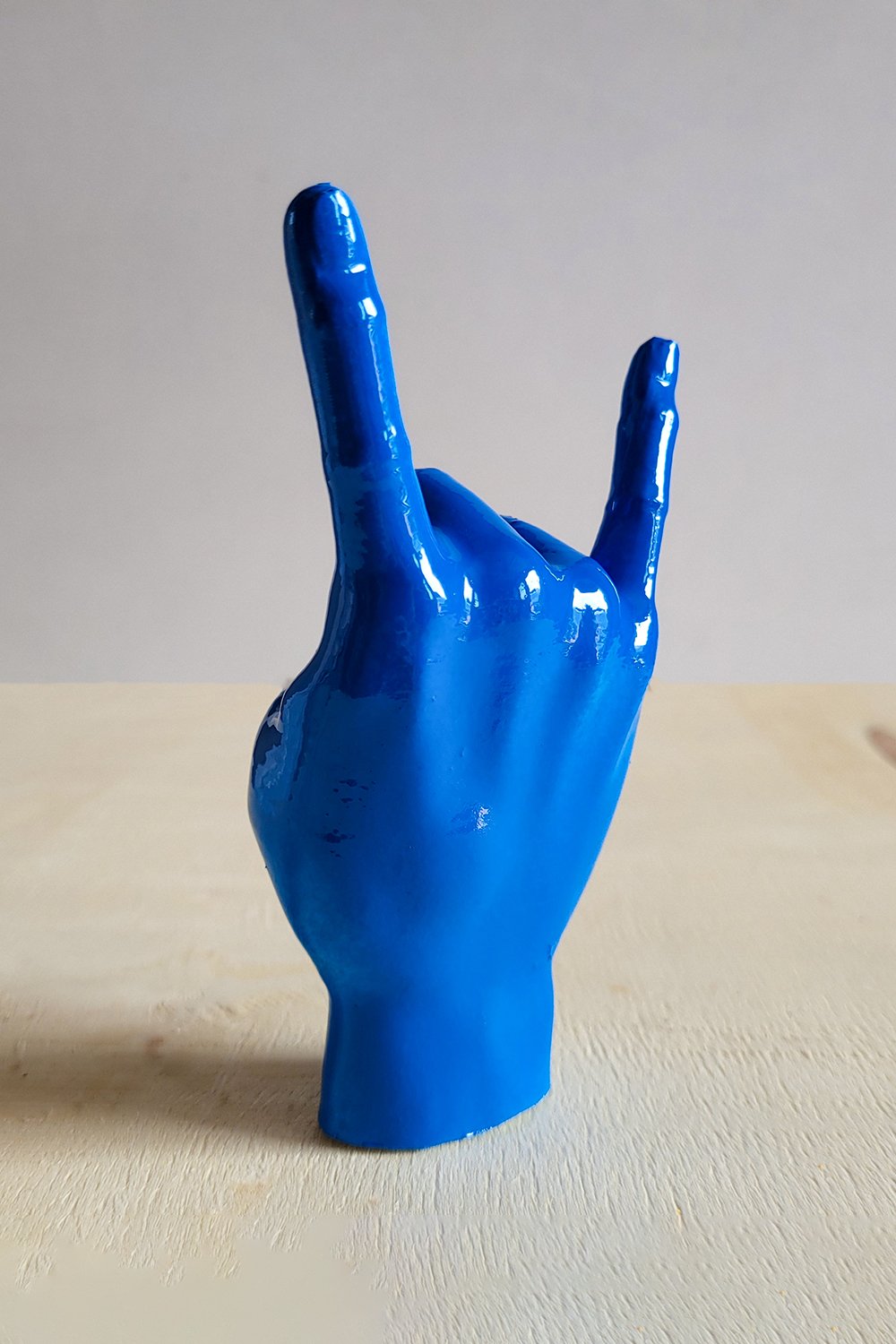 Bu benzersiz el figürü, rock işareti yapan ikonik tasarımıyla dikkat çekiyor.