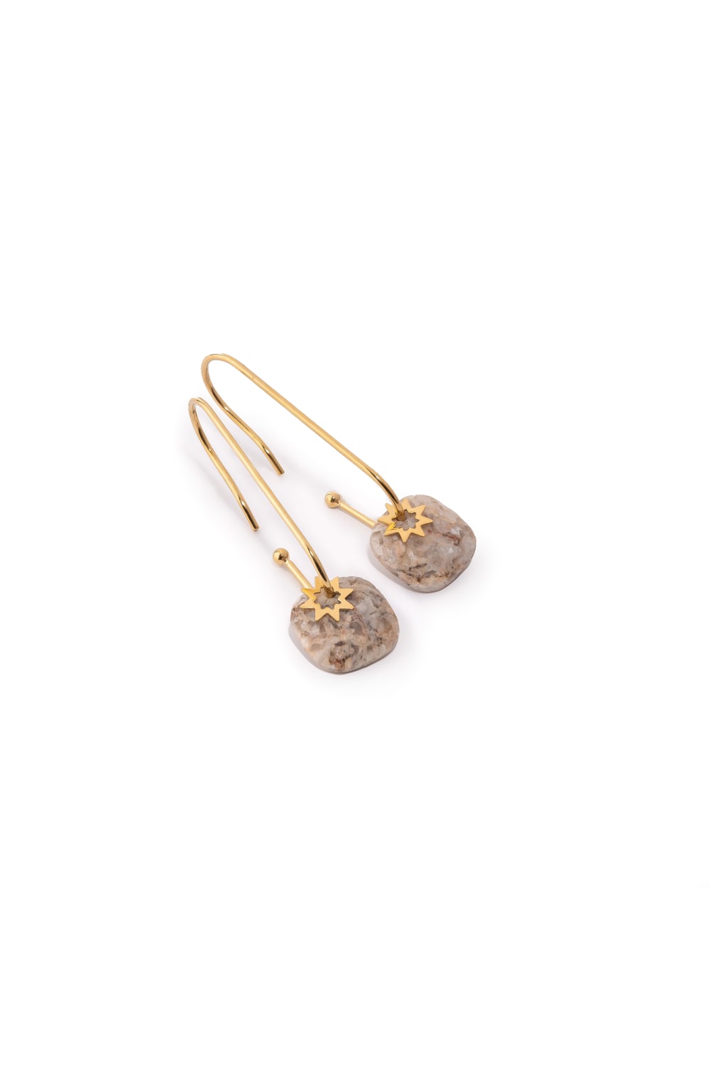 Hoshi Kahverengi Doğal Taşlı Çelik Kadın Küpe
