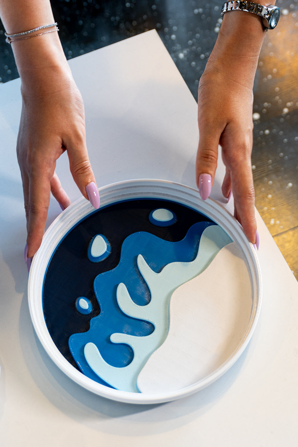 Dekoratif tabak formundaki tasarımı sayesinde yalnızca pratik bir organizer değil, aynı zamanda modern bir masa aksesuarıdır. Evde, ofiste ya da giriş alanında kullanarak dağınıklığı azaltabilir ve eşyalarınıza kolayca ulaşabilirsiniz.