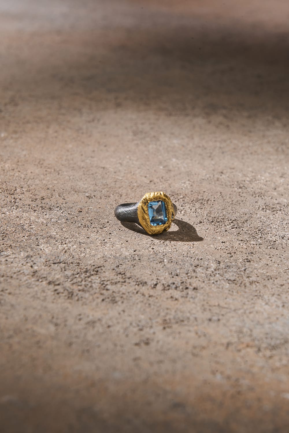 925 ayar üzeri 18 k altın kaplam ve swiss topaz taşı kullanılmıştır.