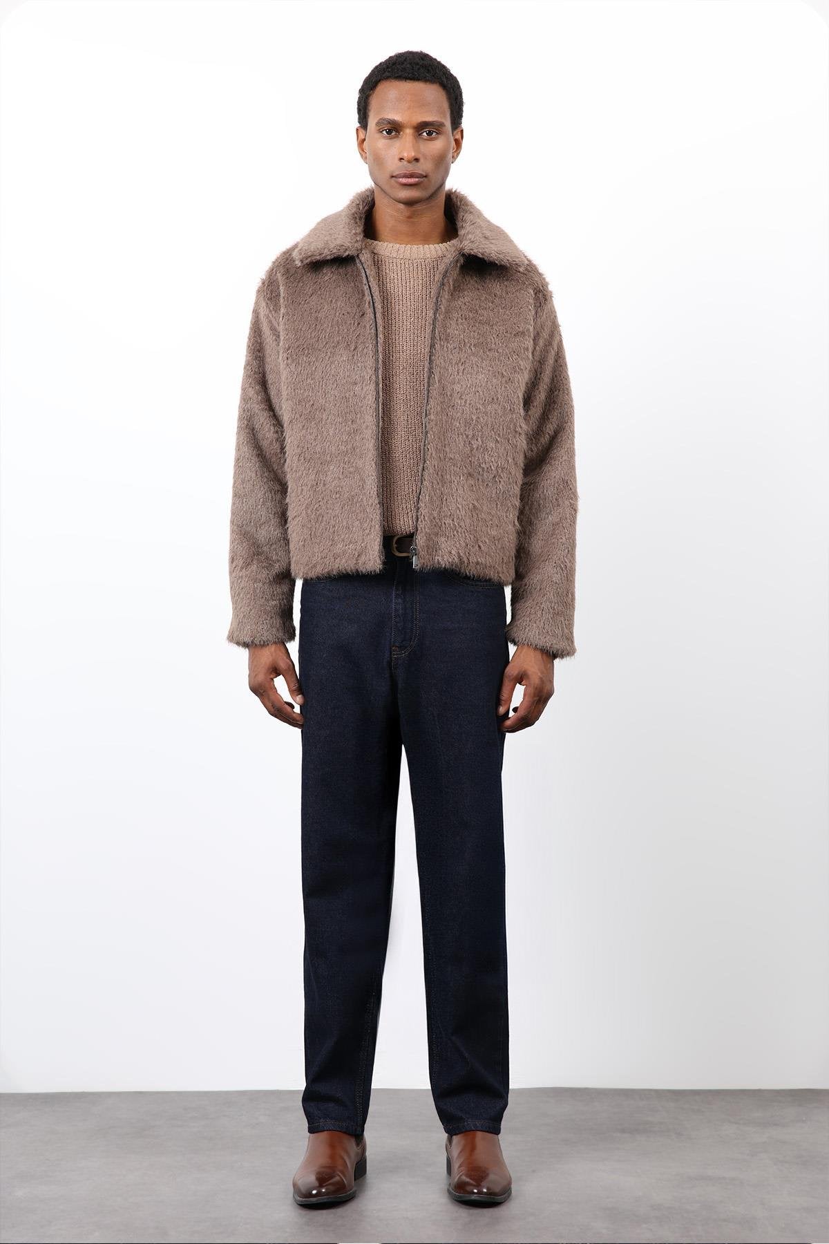 Açık Kahve Yumuşak Dokulu Erkek Mont