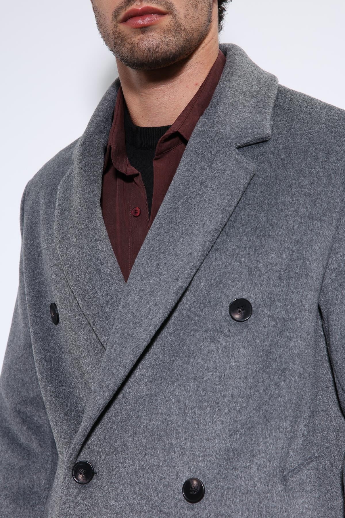 Antrasit Yün Karışımlı Kruvaze Erkek Kaban
