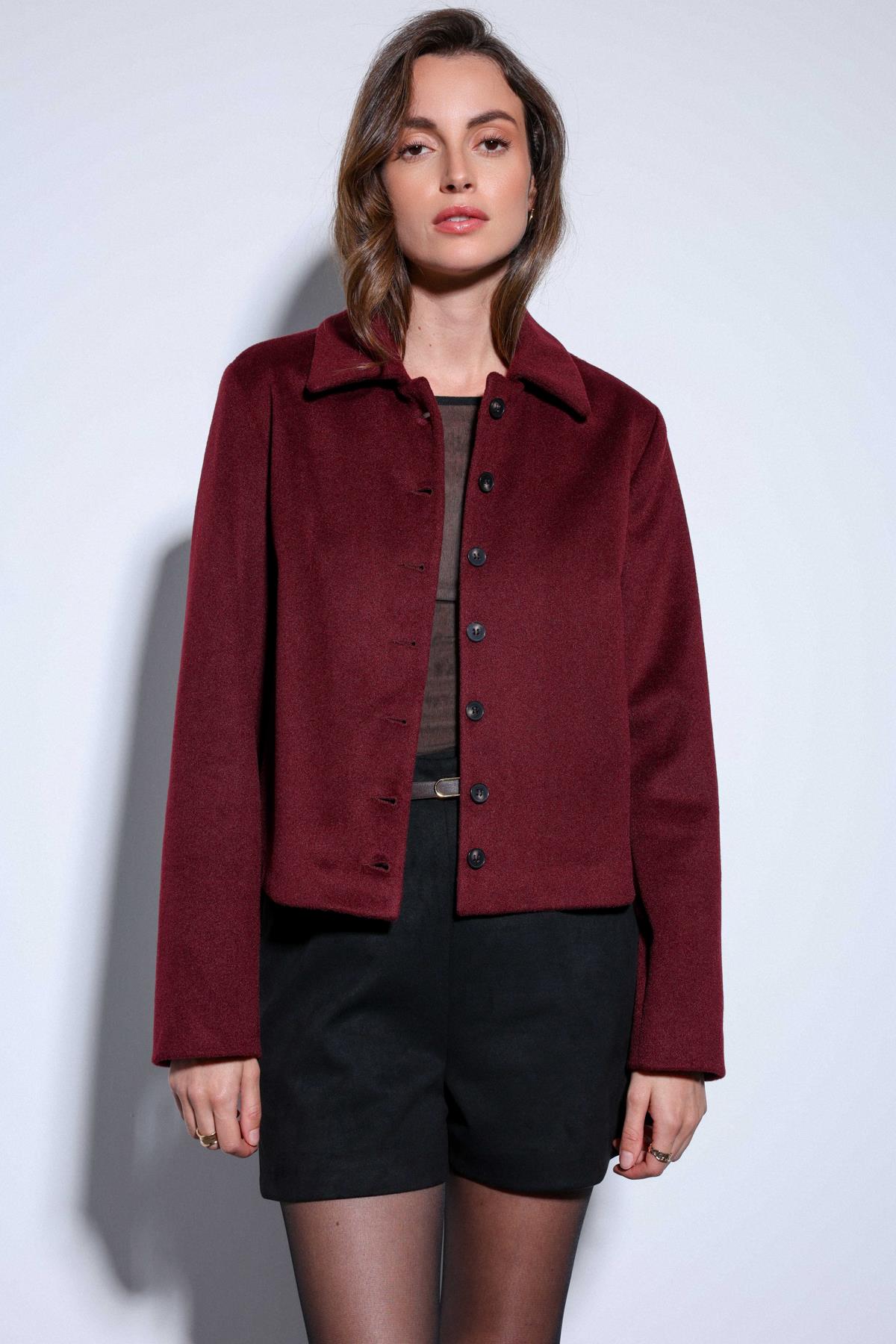 Bordo Gömlek Yaka Kısa Kaşe Ceket