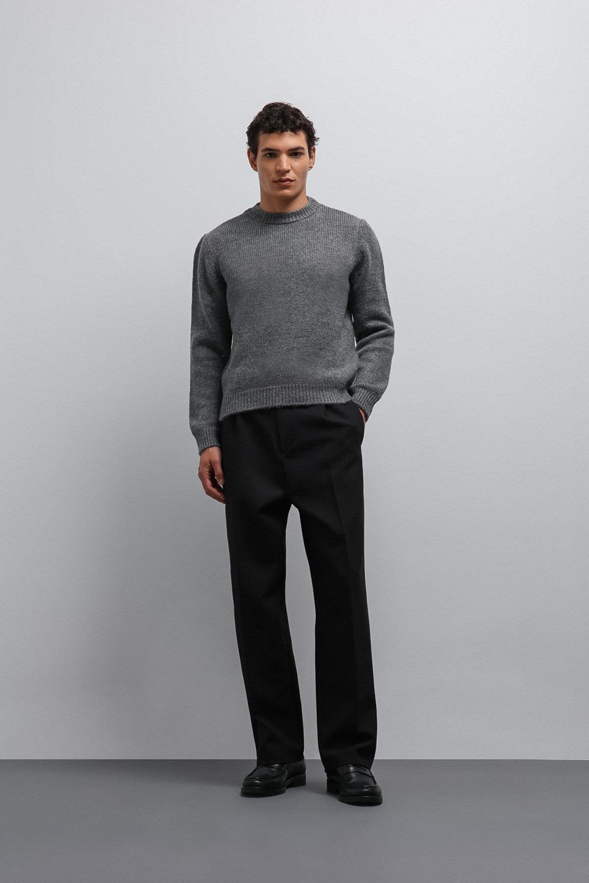 Gri Yumuşak Dokulu Erkek Kazak