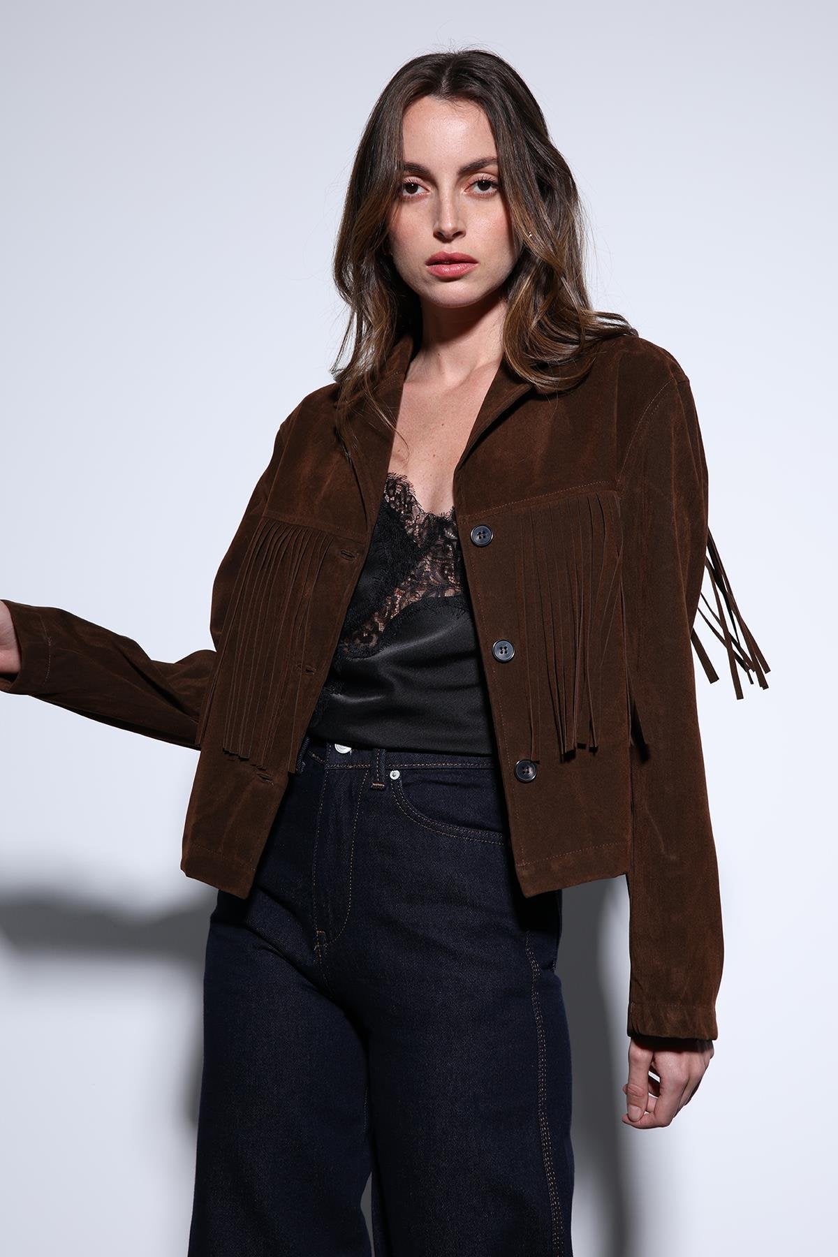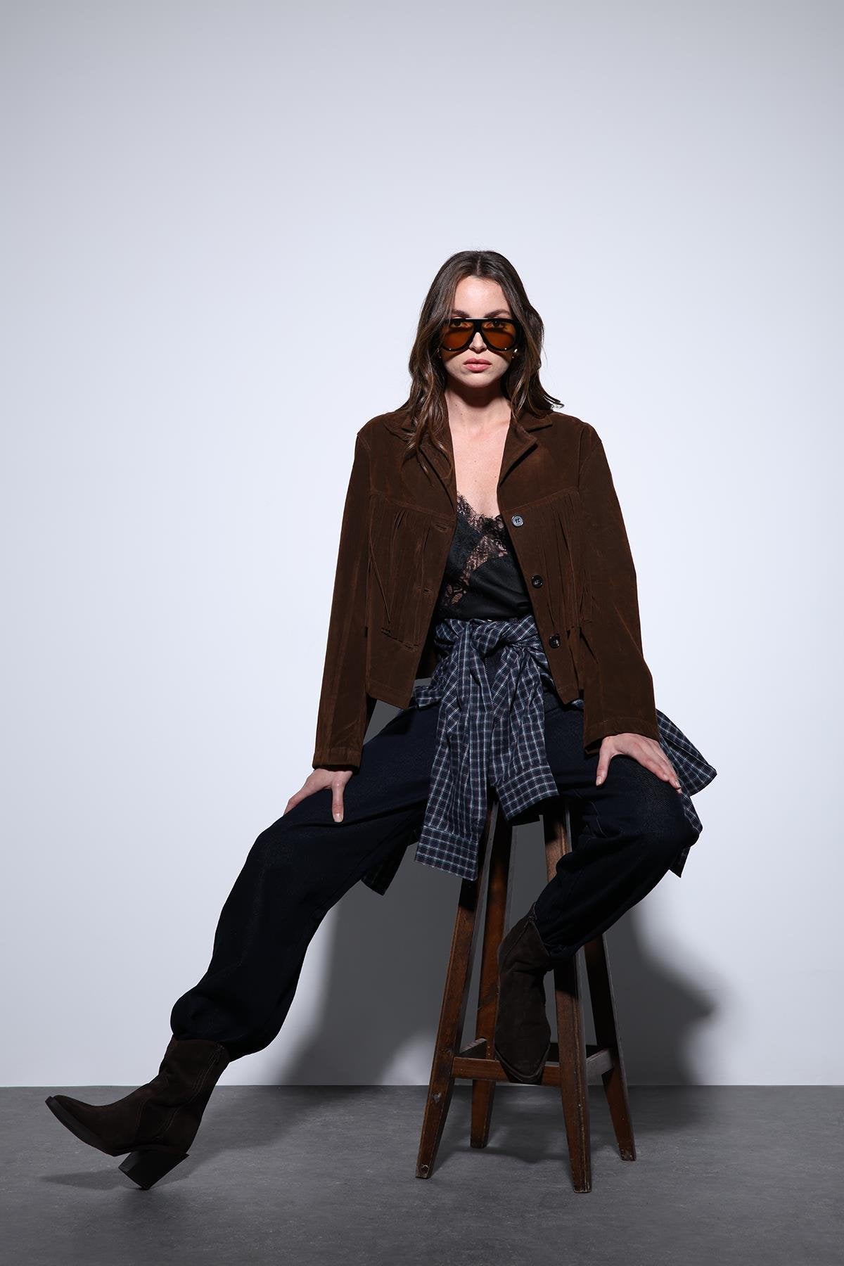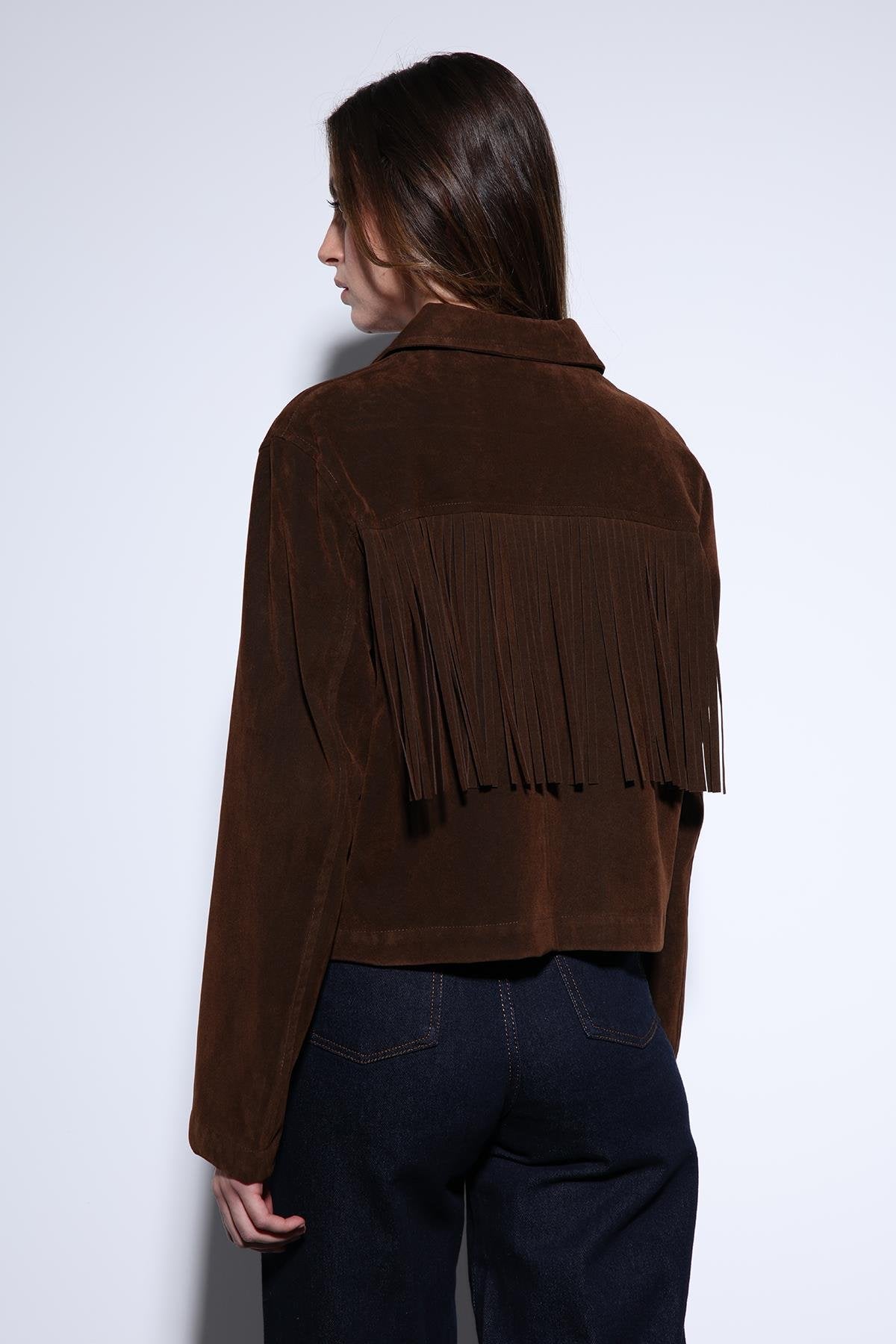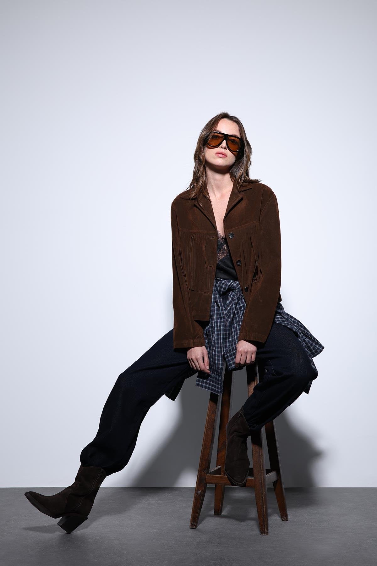 Kahve Püskül Detaylı Süet Kadın Ceket