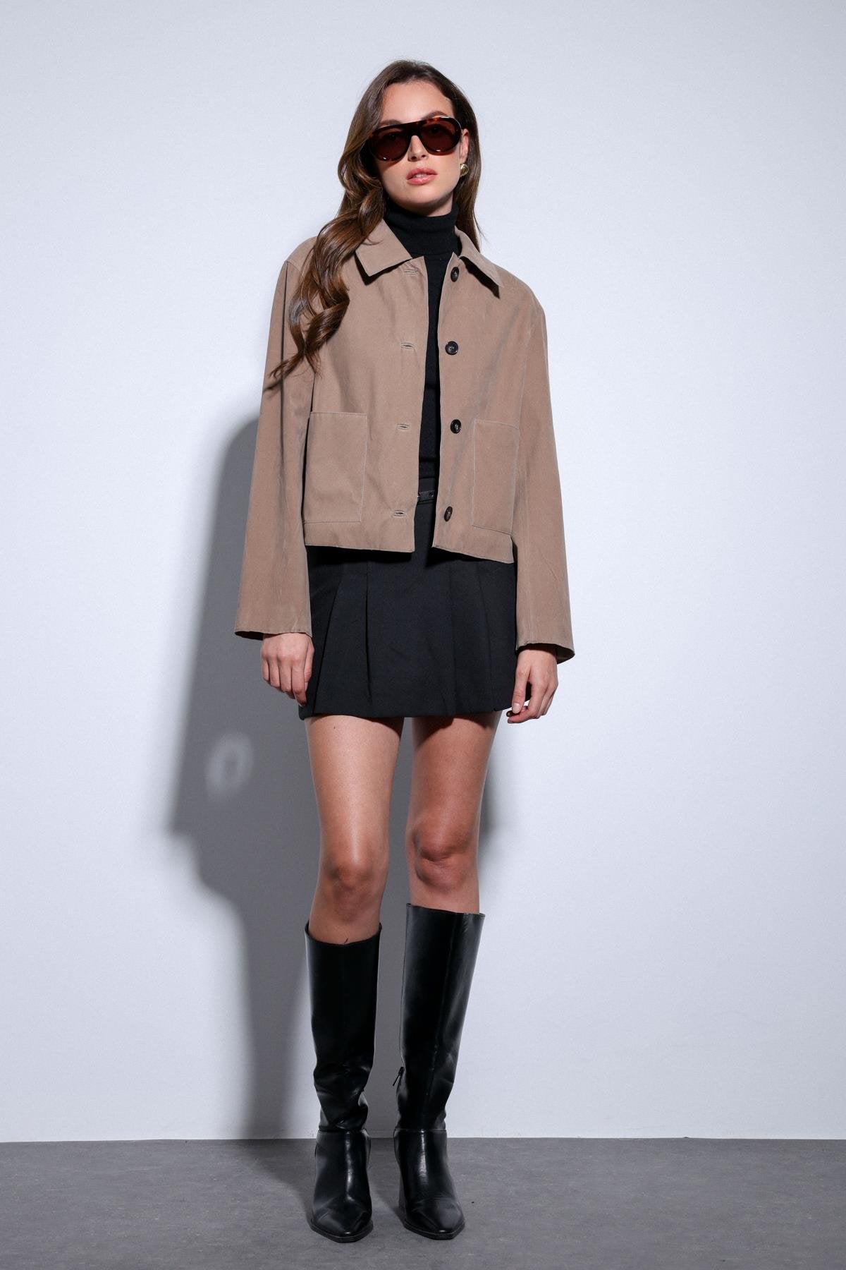 Vizon Torba Cepli Süet Kadın Ceket