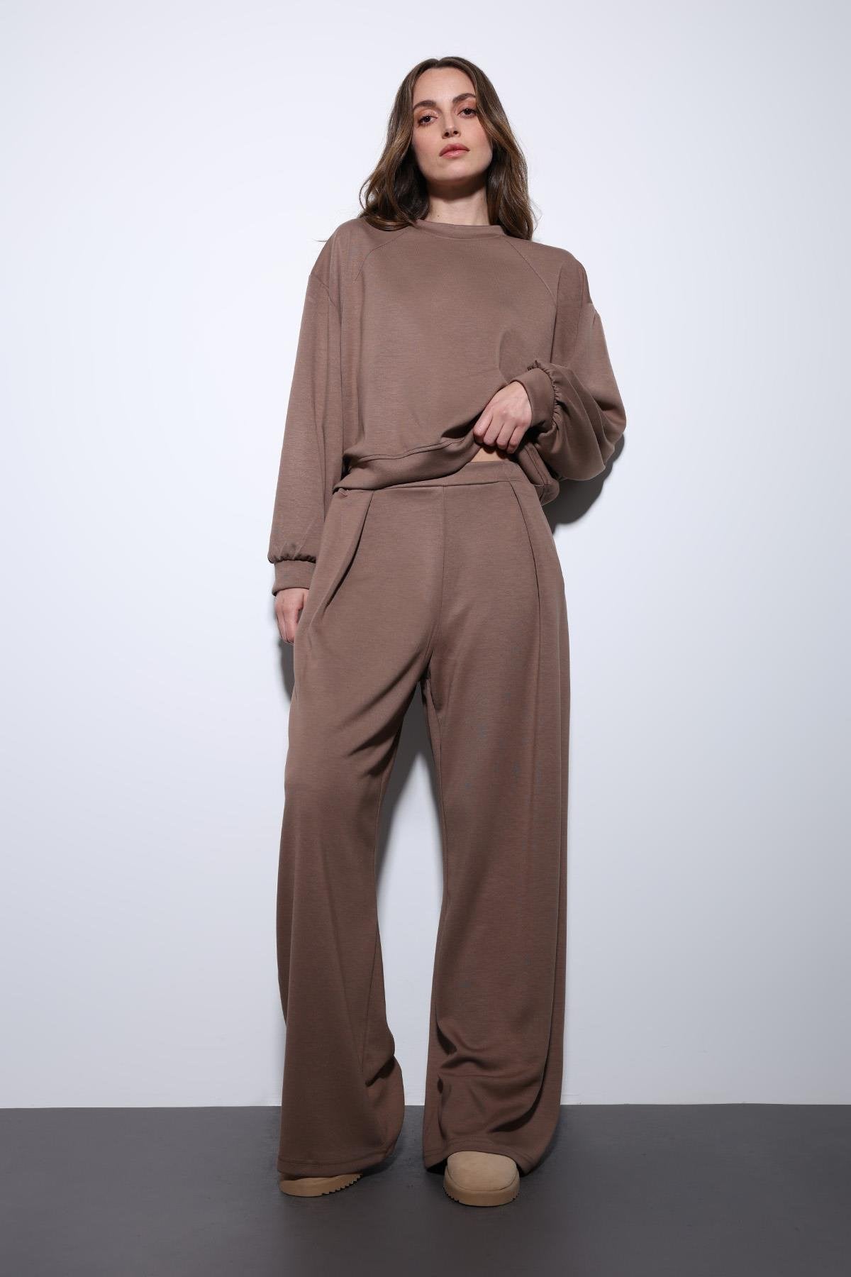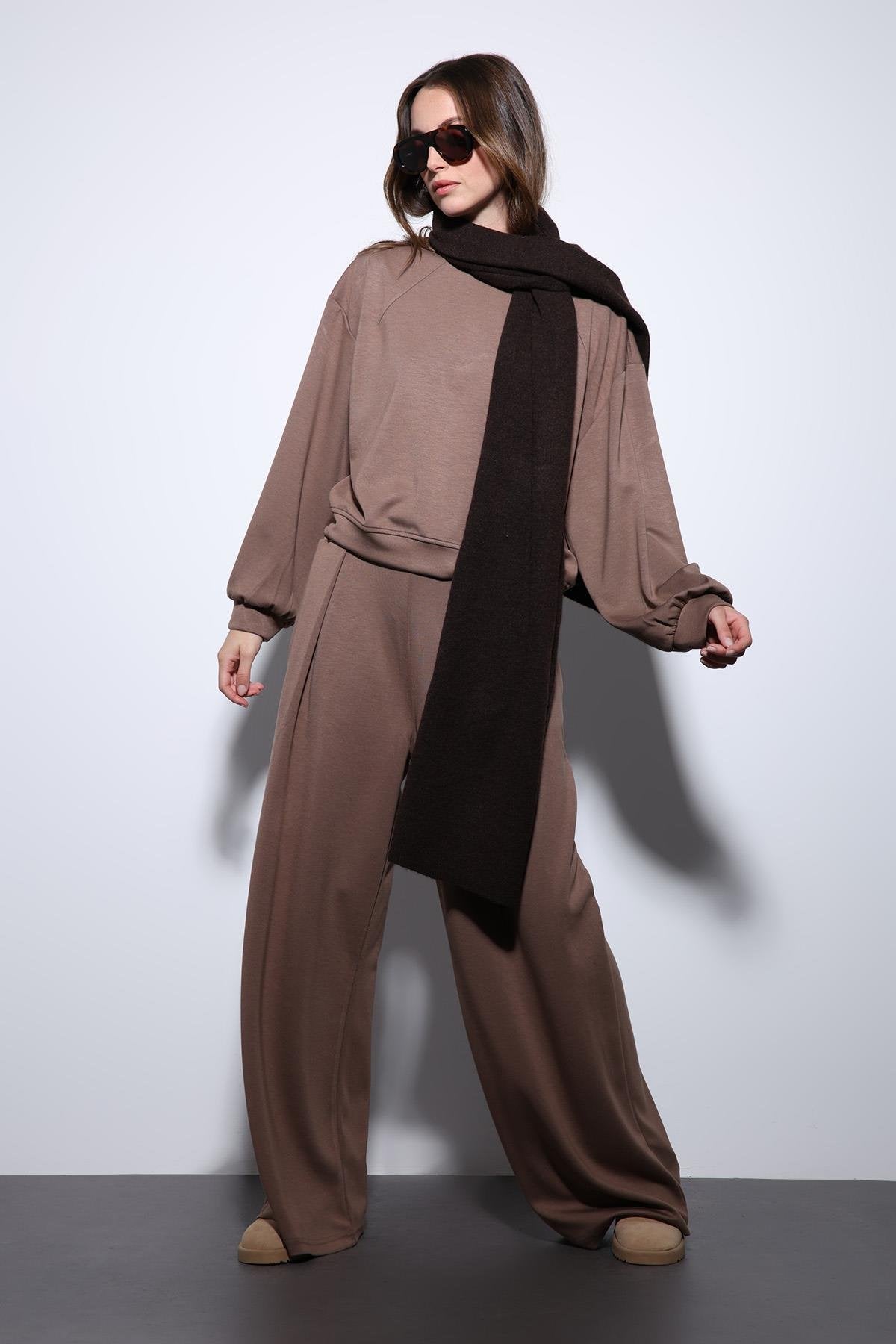 Bej Geniş Paça Relaxed Kadın Takım