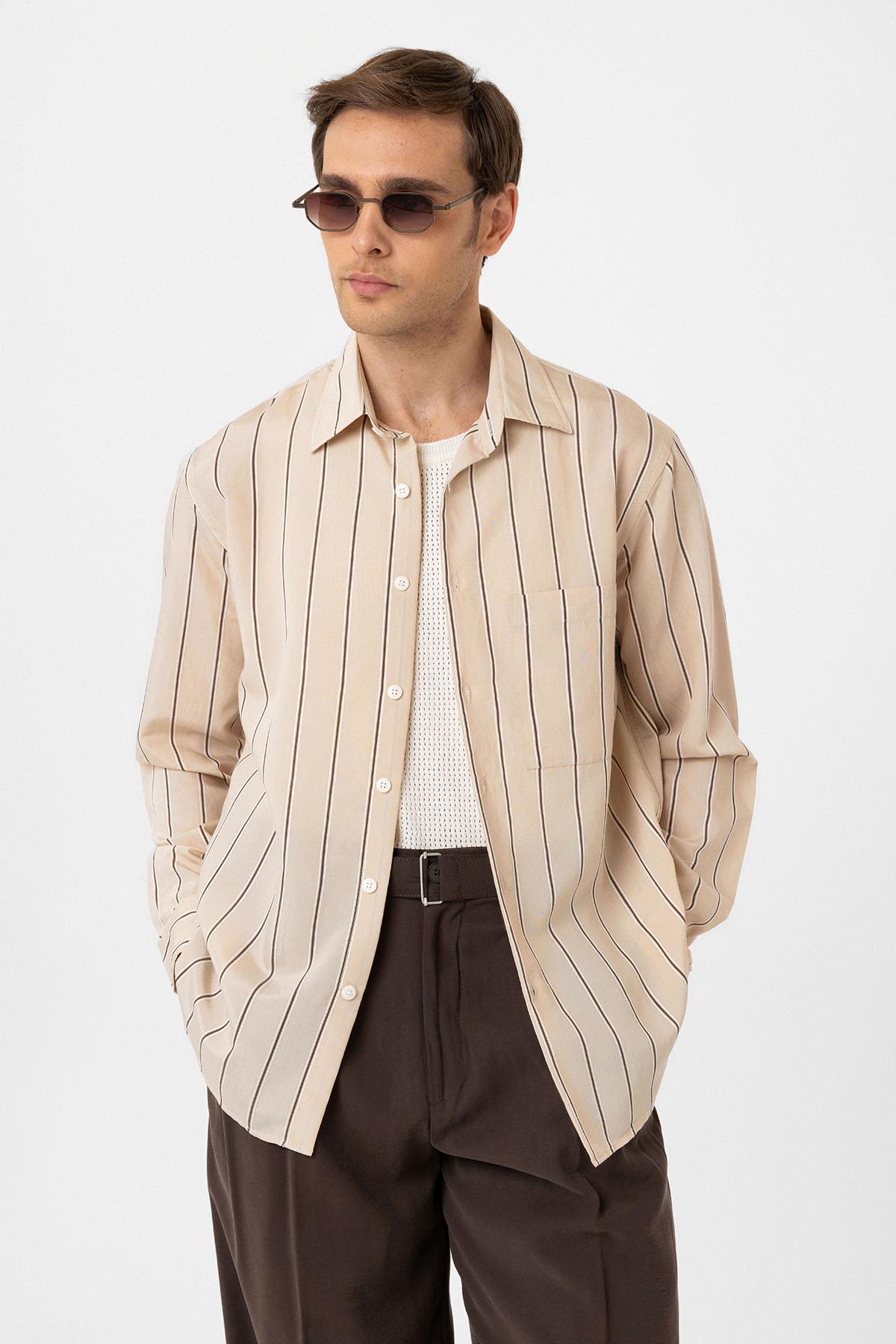 Bej hakimiyetinde özgün duruşuyla öne çıkan Antioch Uzun Kol Gömlekkarakteristik silüet yansıtan lüks tasarımıyla göz dolduruyor.Uzun Kol tasarım Tam Pat Düğmeli kapamasıyla tamamlanıyor. Lüks dokusu ve kalıbıyla son derece konforlu hissetmenizi sağlayacak tasarım günlük şehir stillerinizde ve ofis takımlamalarınızda kullanıma uyum sağlıyor. İsteğinize göre çeşitli pantolonlarınızla beraber kullanabileceğiniz tasarım şık ve iddialı görünüm kazanmanızı sağlıyor ve stilinizi bir adım öne taşıyor.