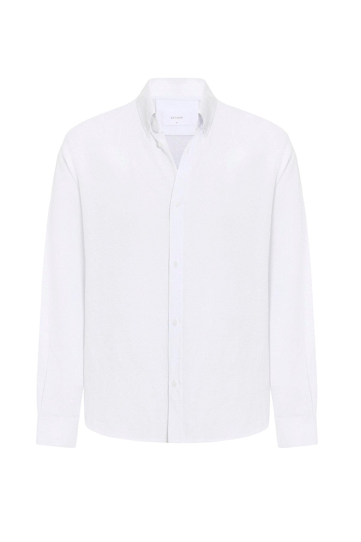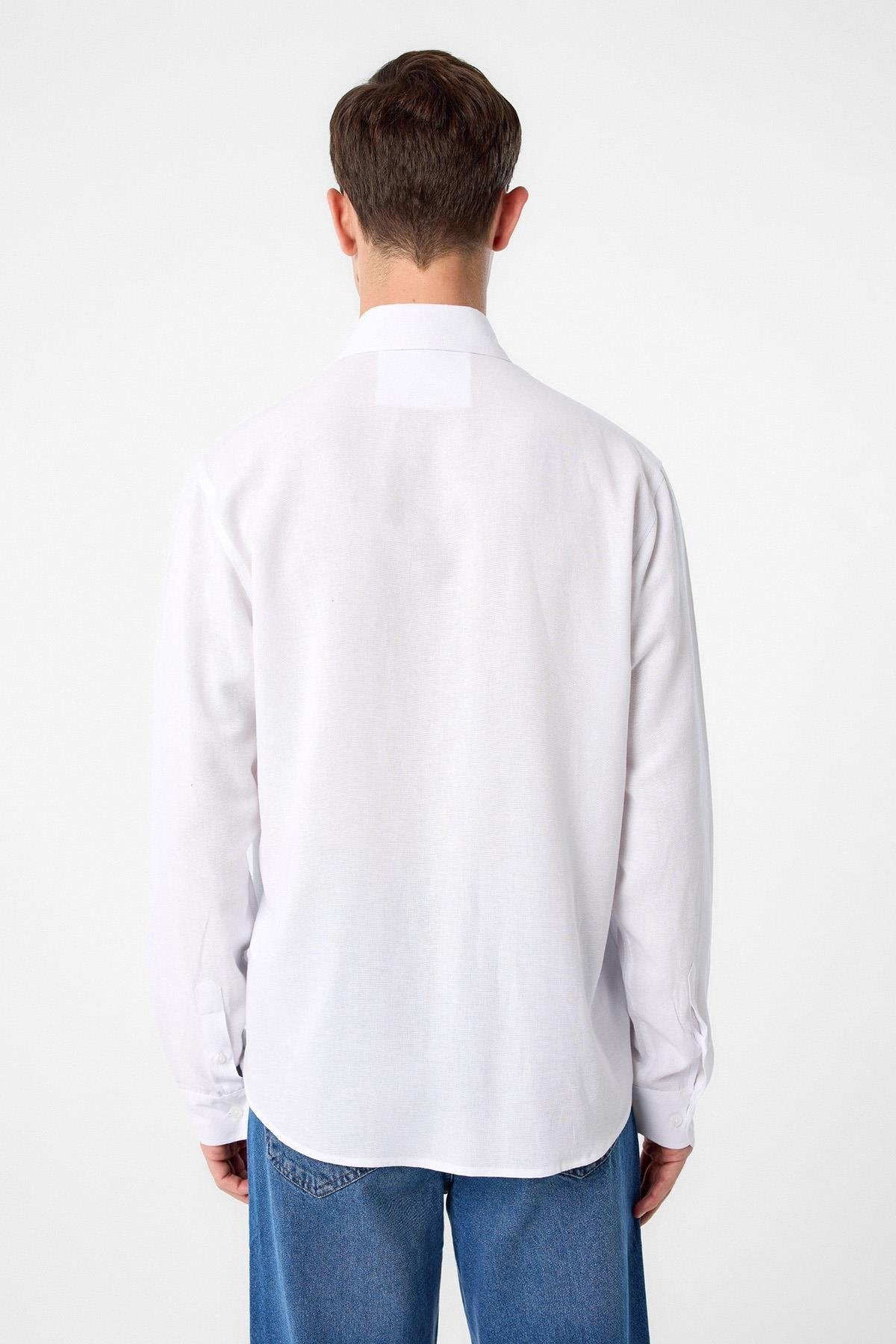Beyaz Keten Karışımlı Yaka Düğmeli Erkek Gömlek
