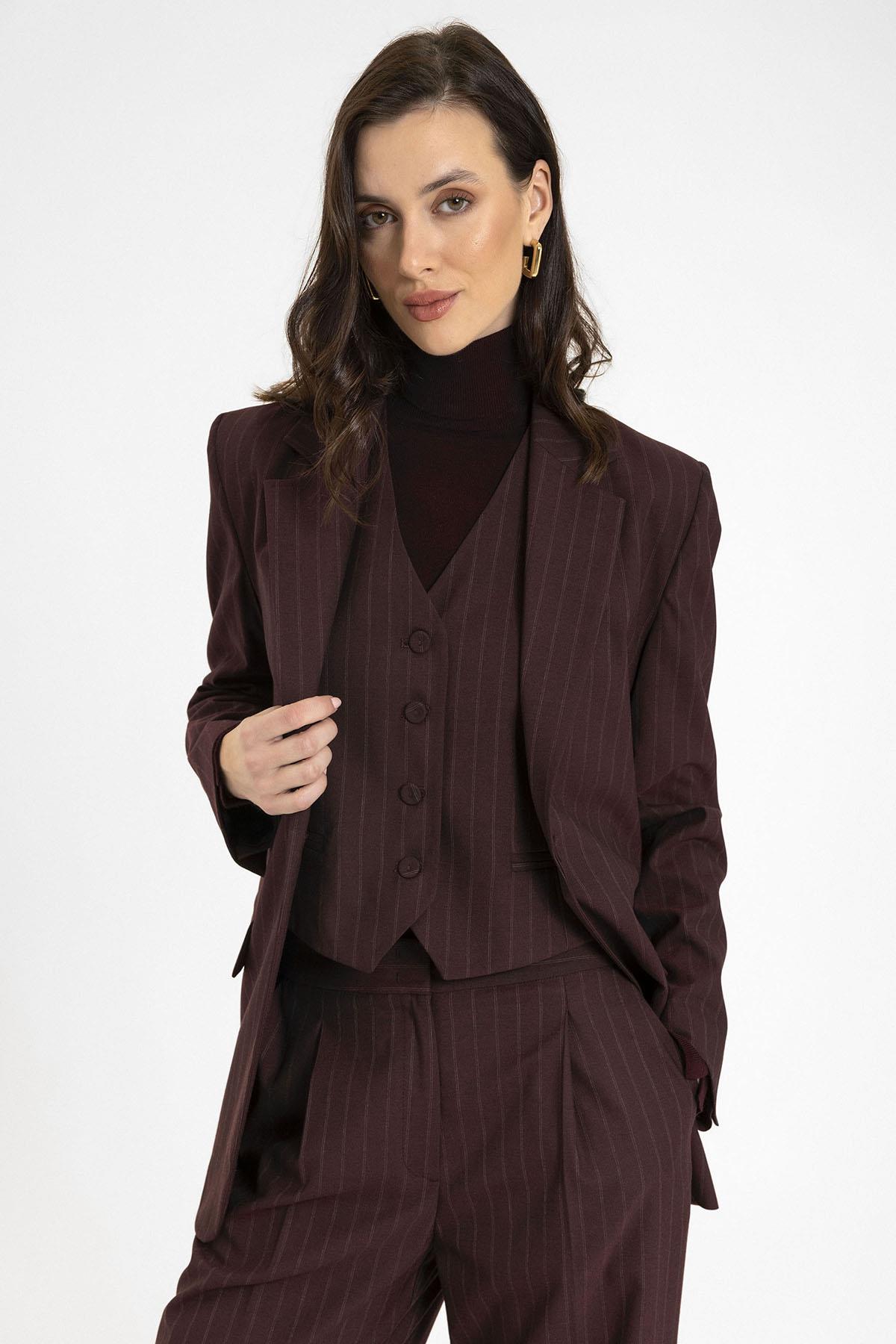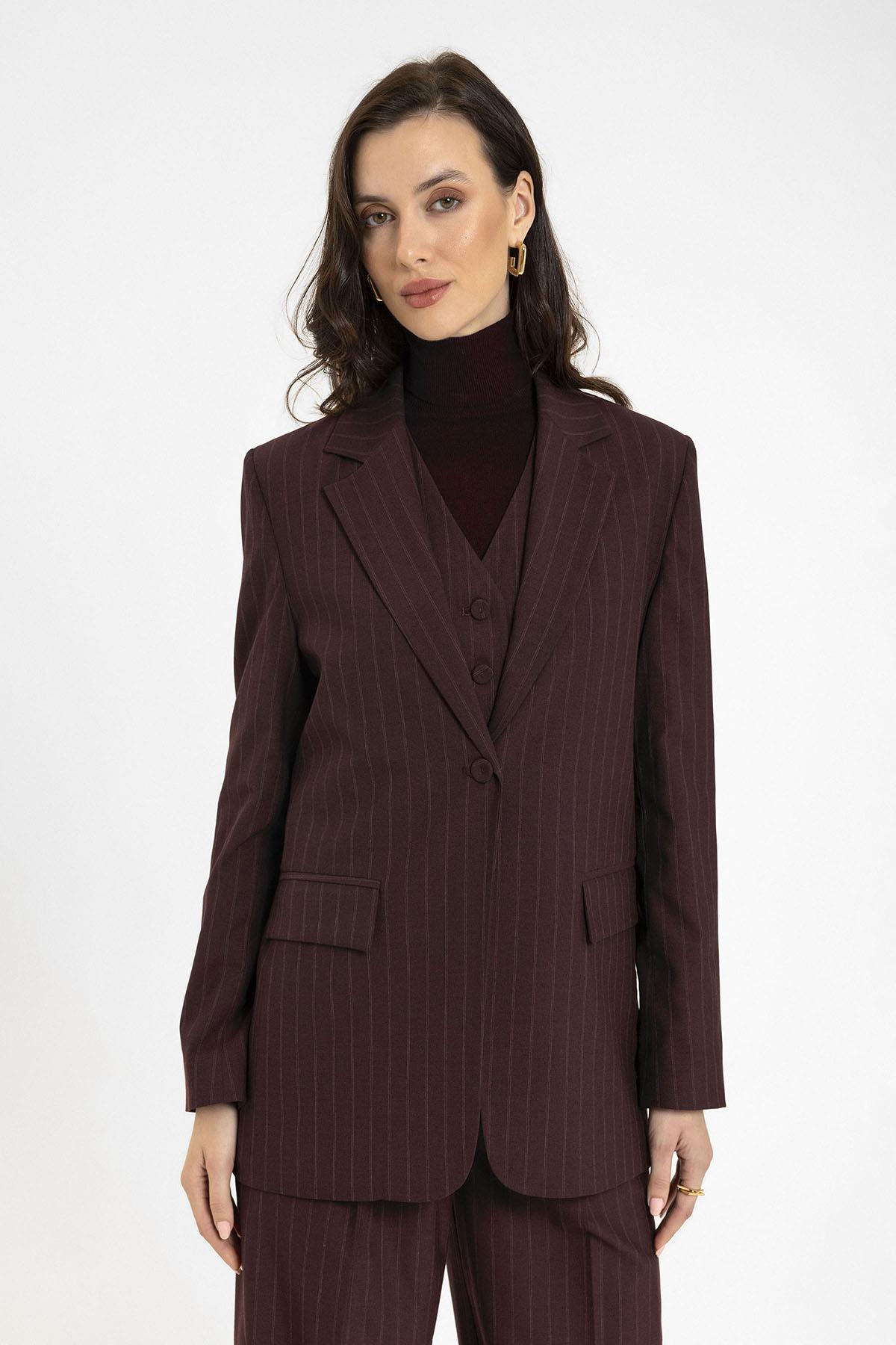 Bordo Kadın Tek Düğme Çizgili Blazer Ceket