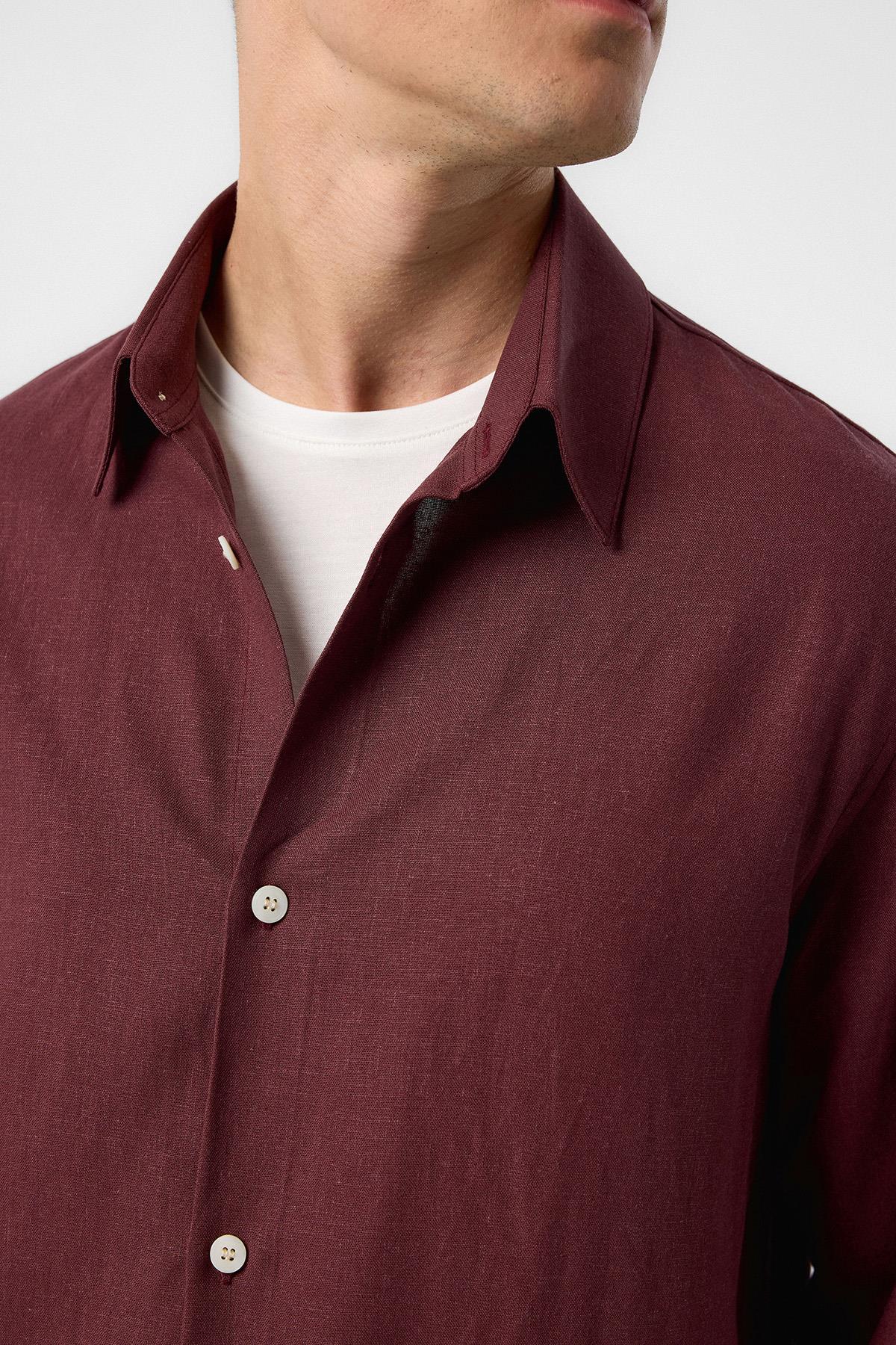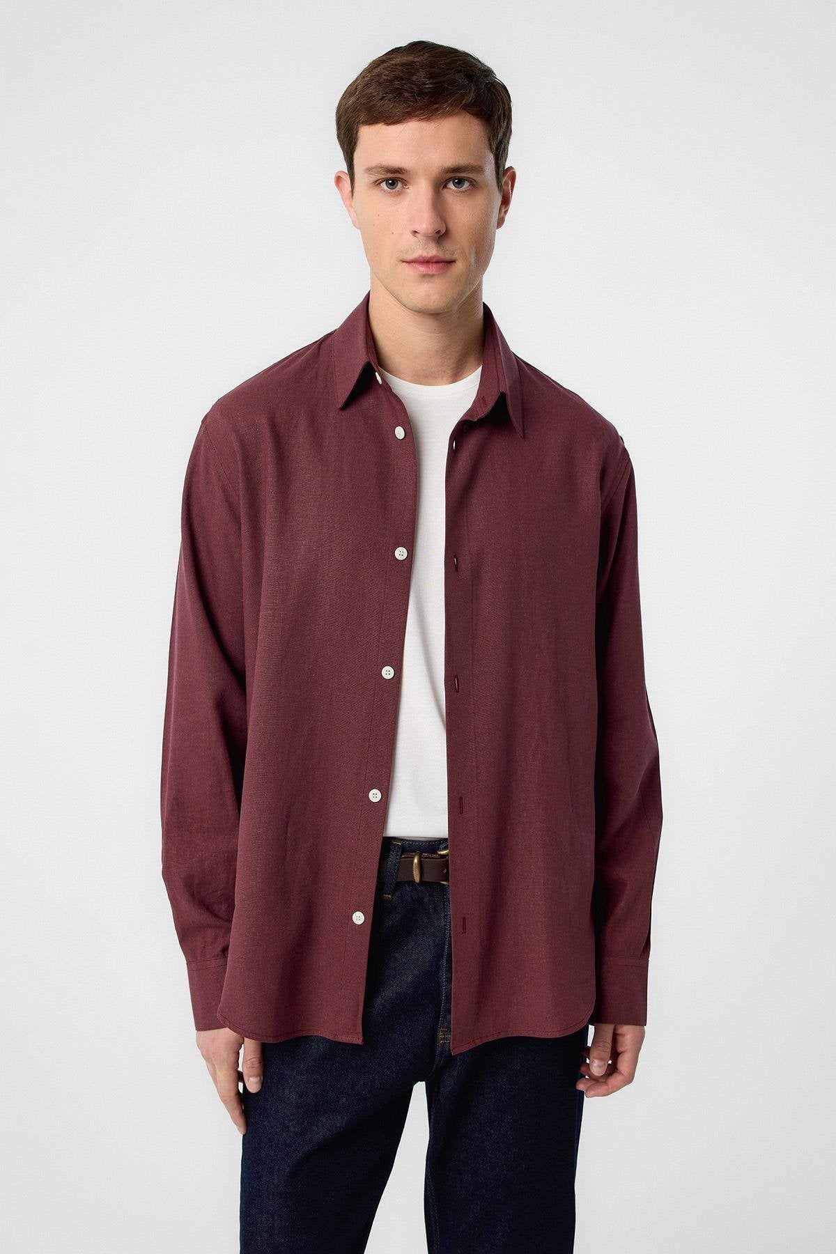 Bordo Relax Fit Keten Karışımlı Erkek Gömlek