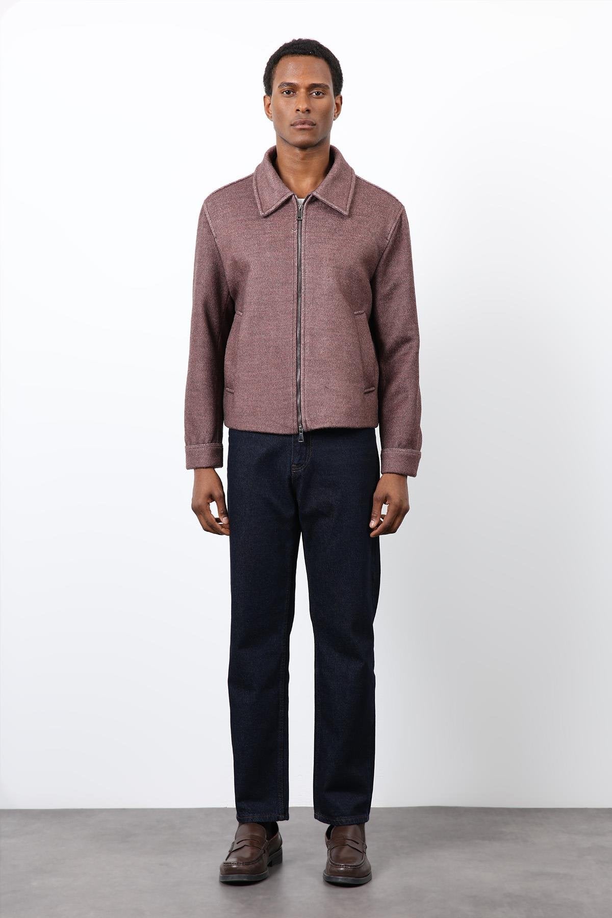 Bordo Yün Karışımlı Erkek Ceket