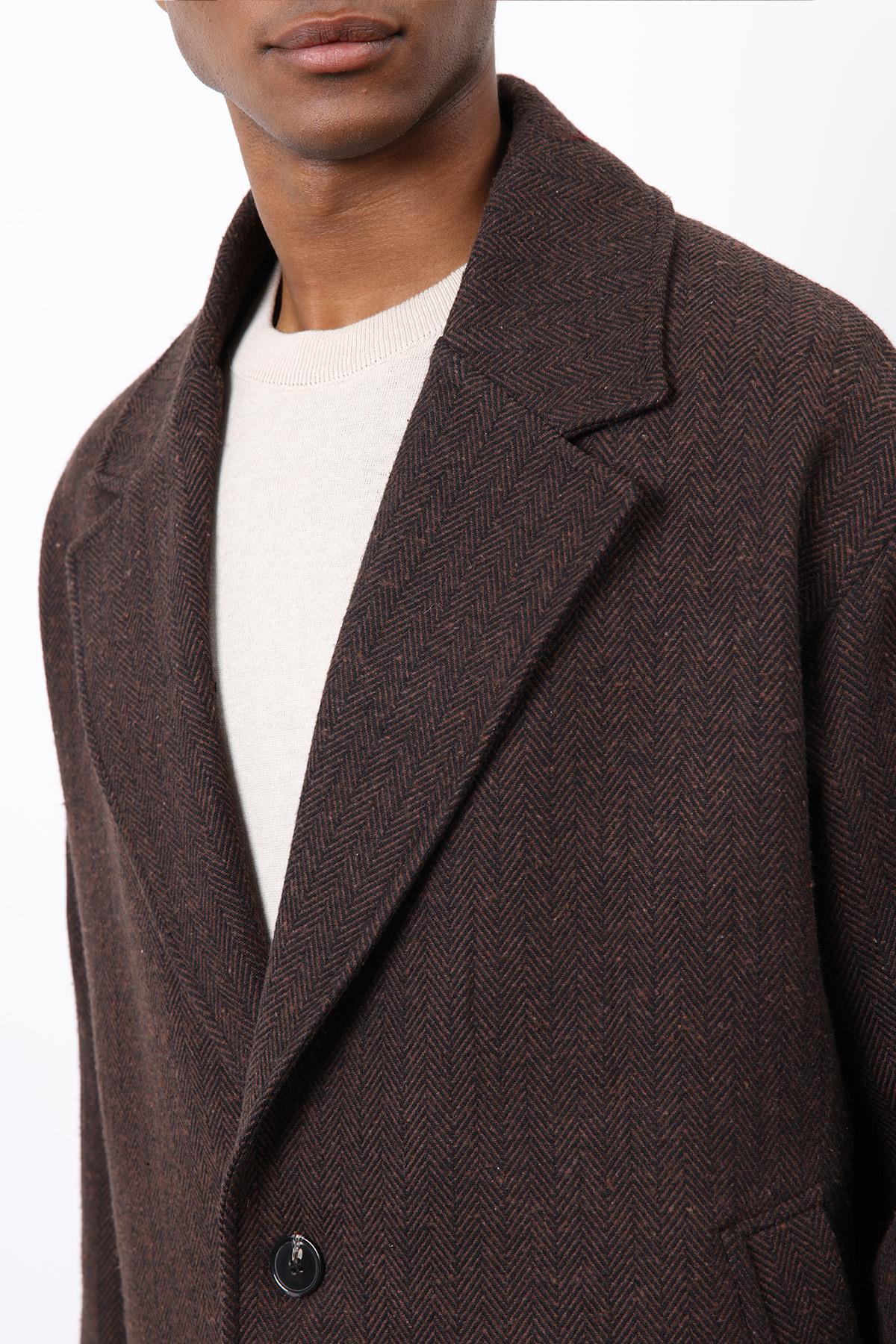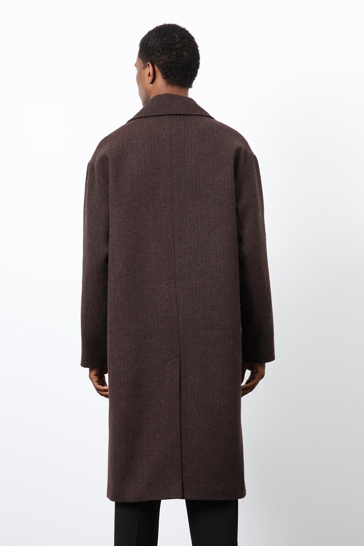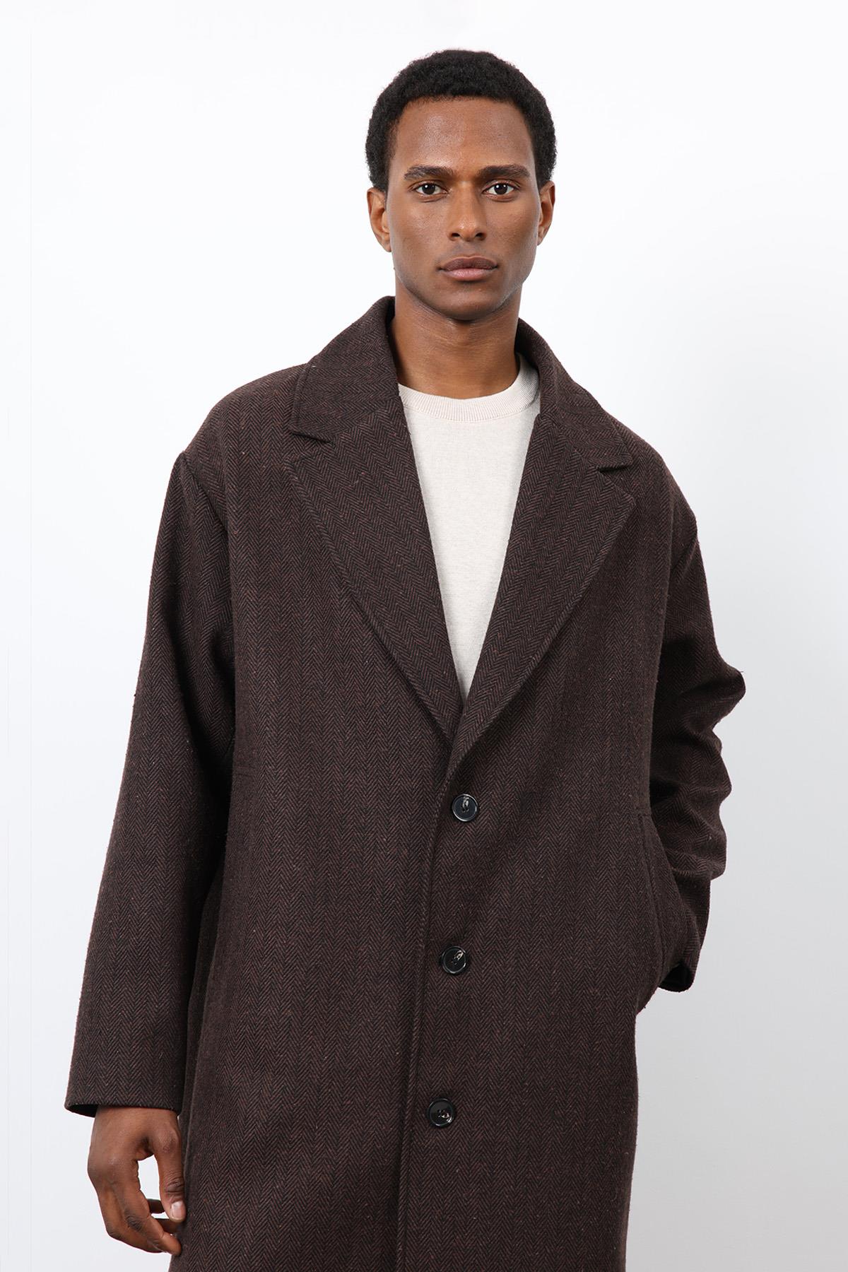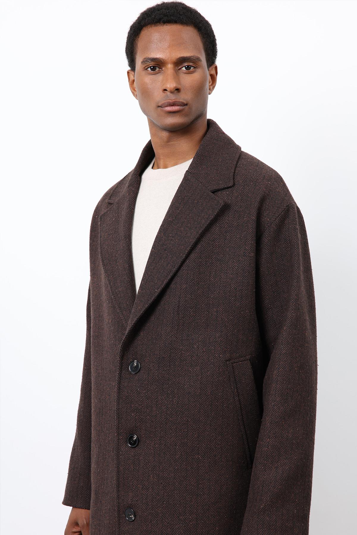 Kahve Relax Fit Balıksırtı Desenli Erkek Kaban