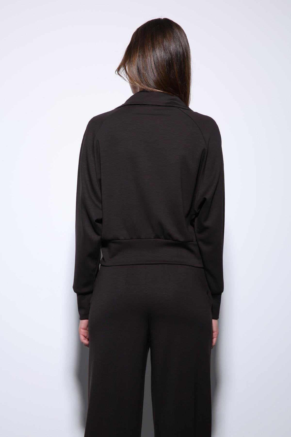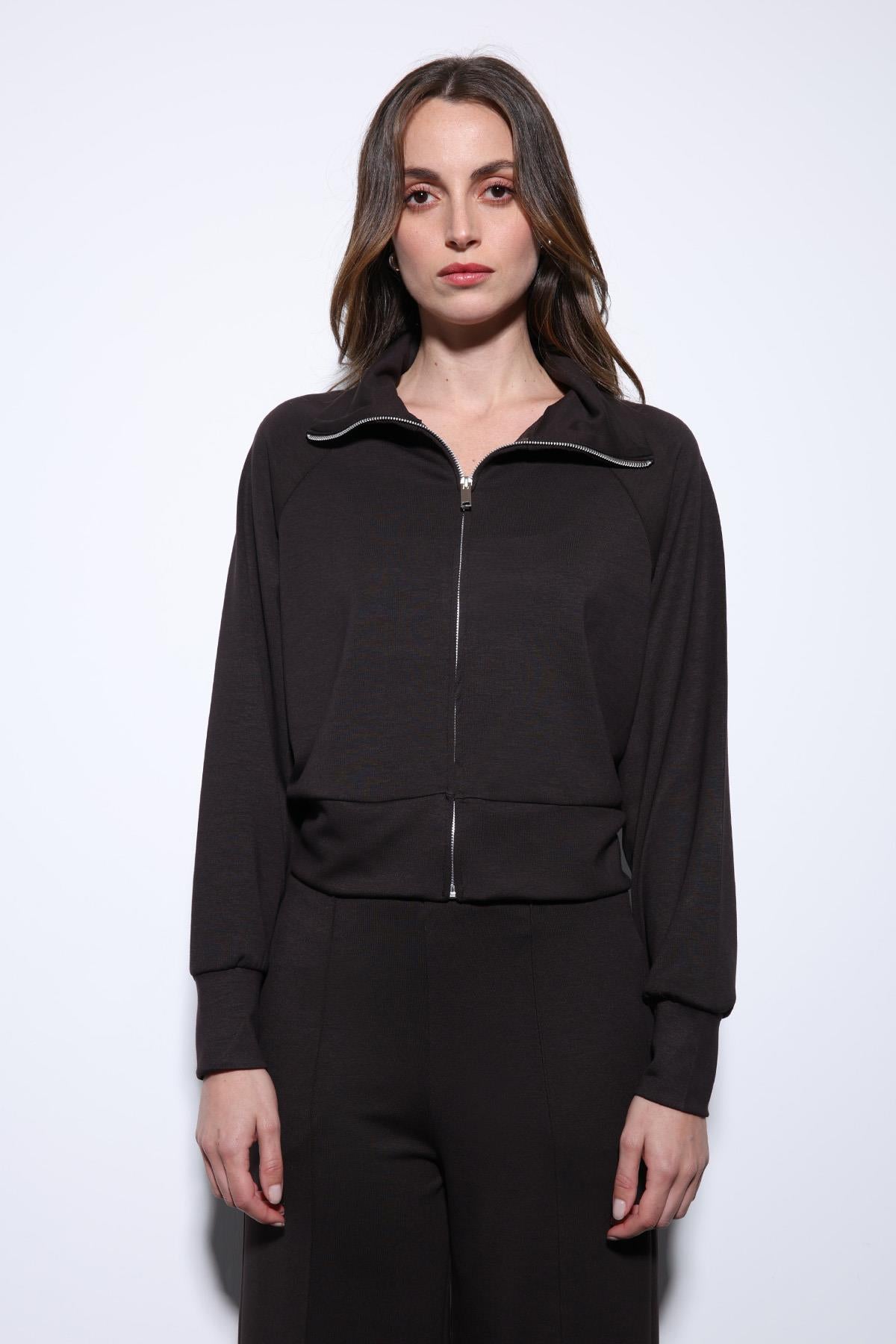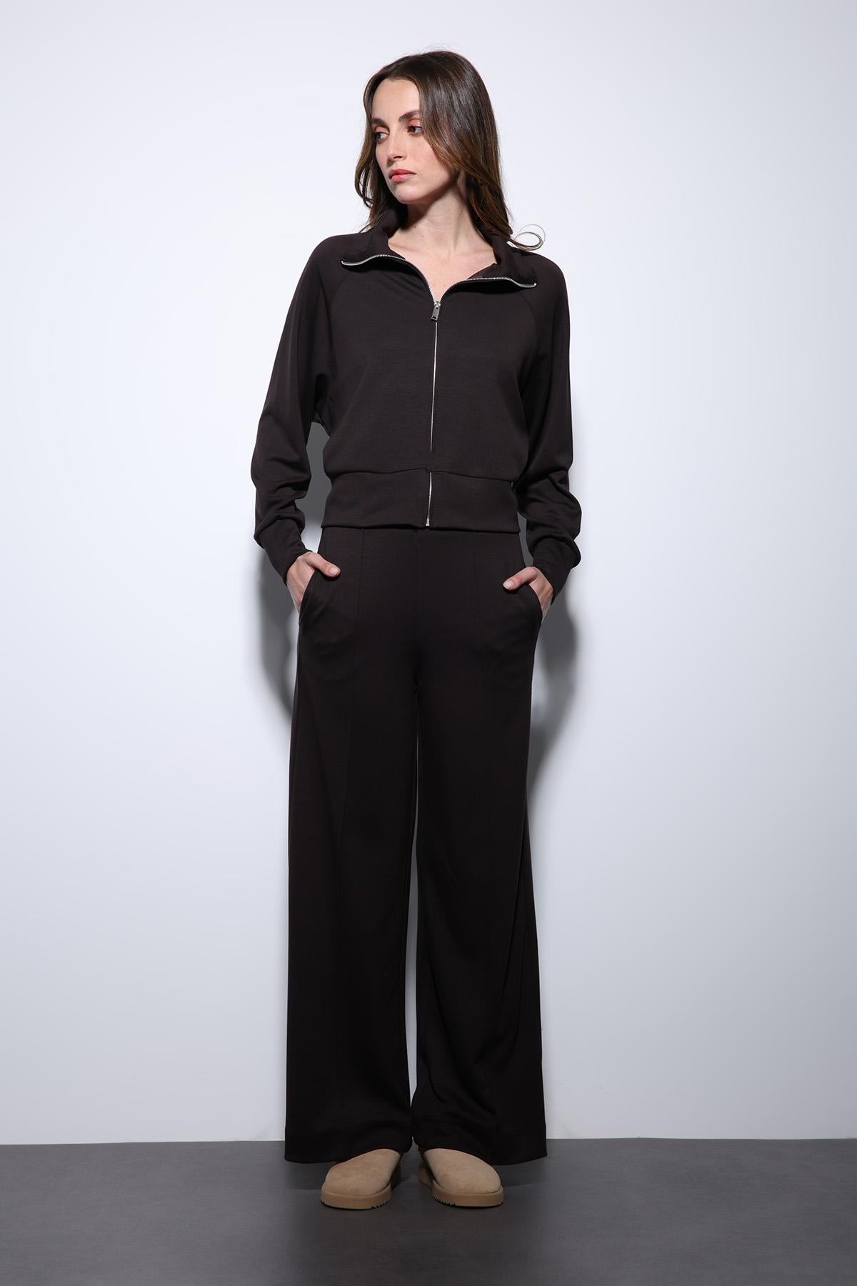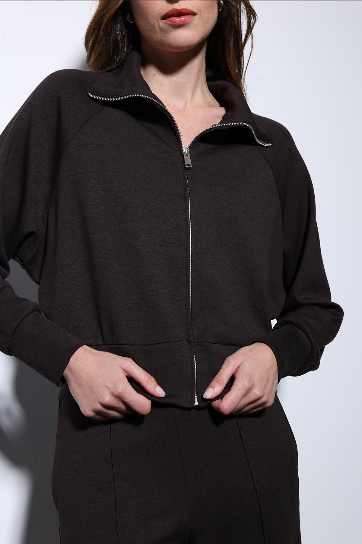 Koyu Kahve Fermuarlı Kadın Eşofman Takım