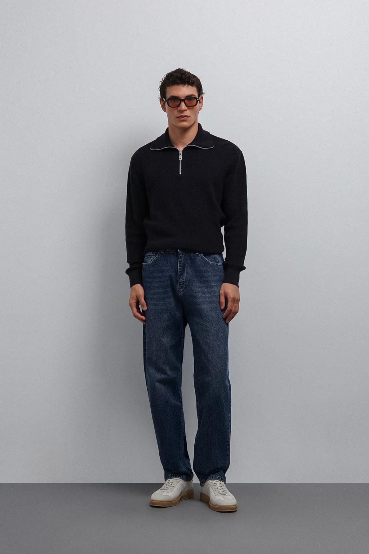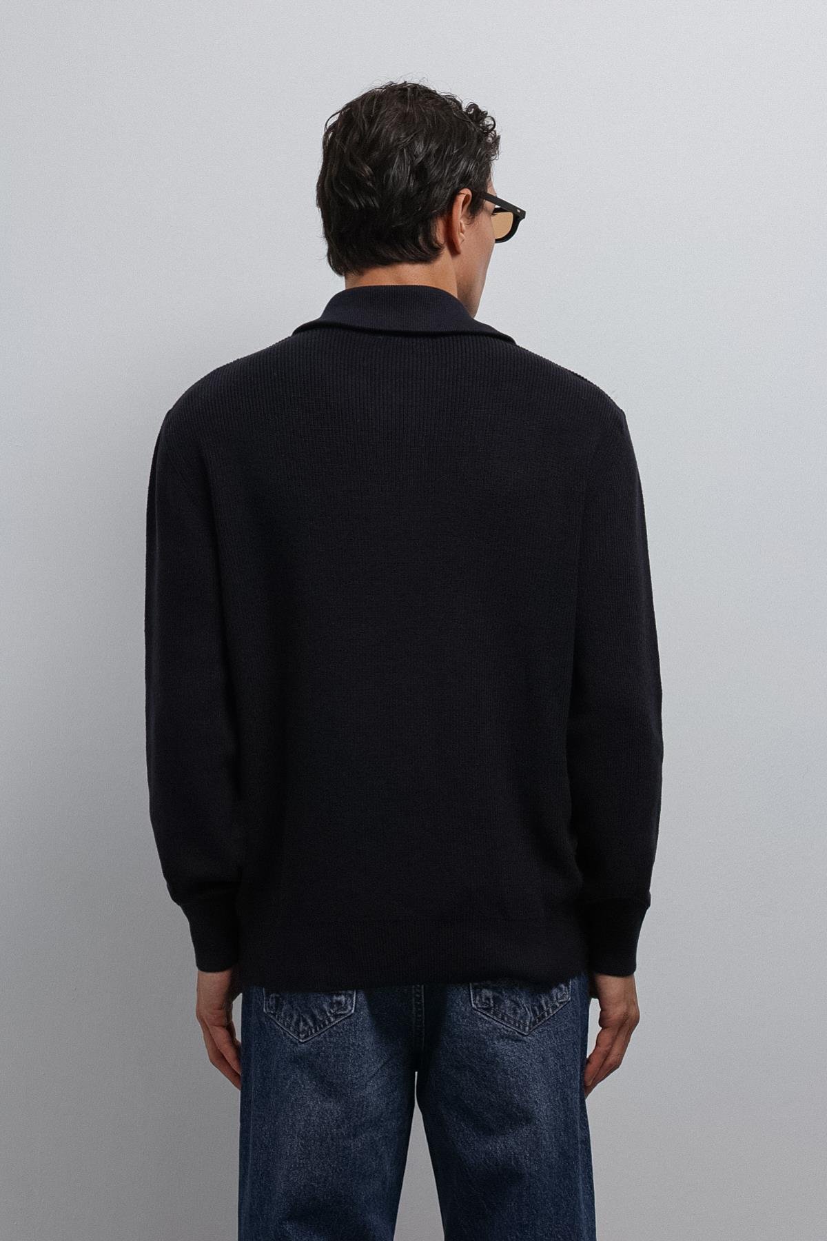 Lacivert Fermuarlı Triko Erkek Kazak