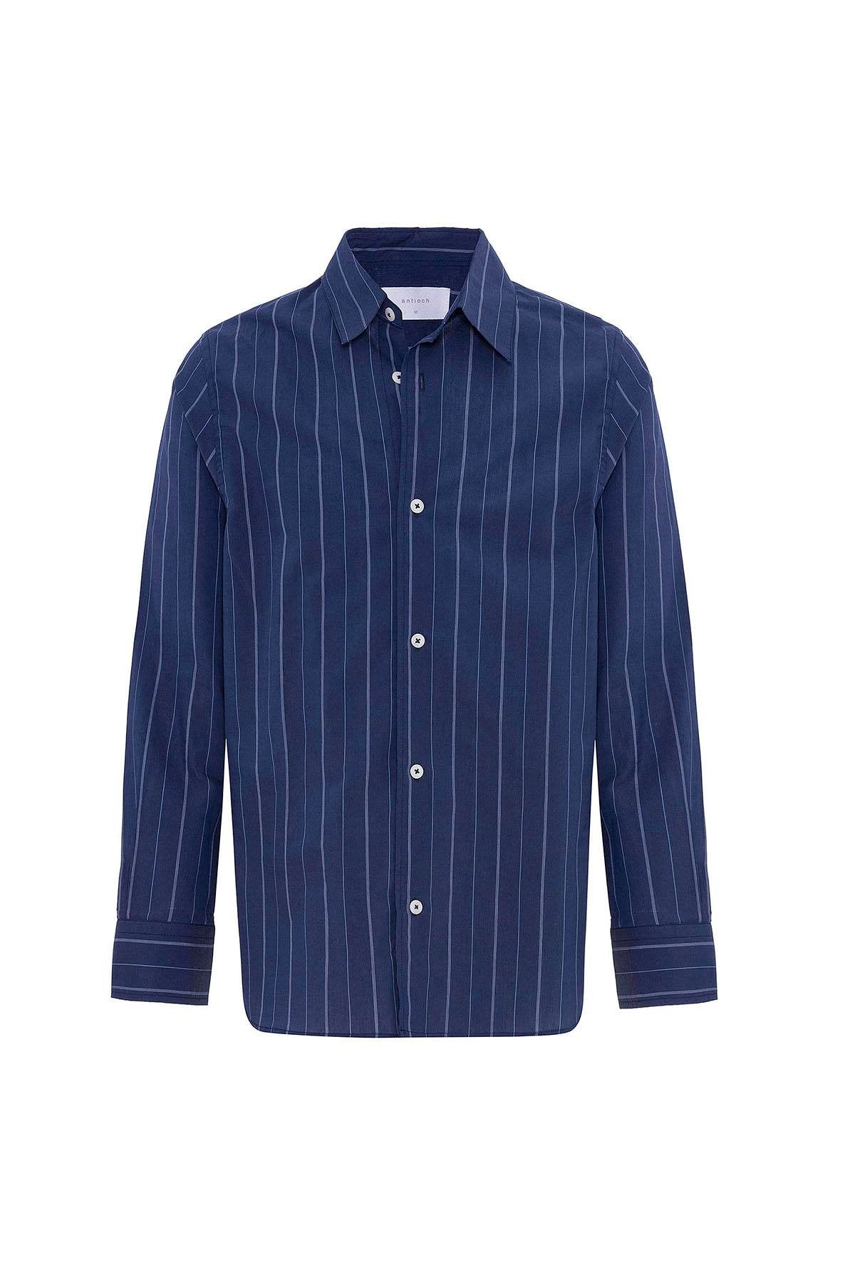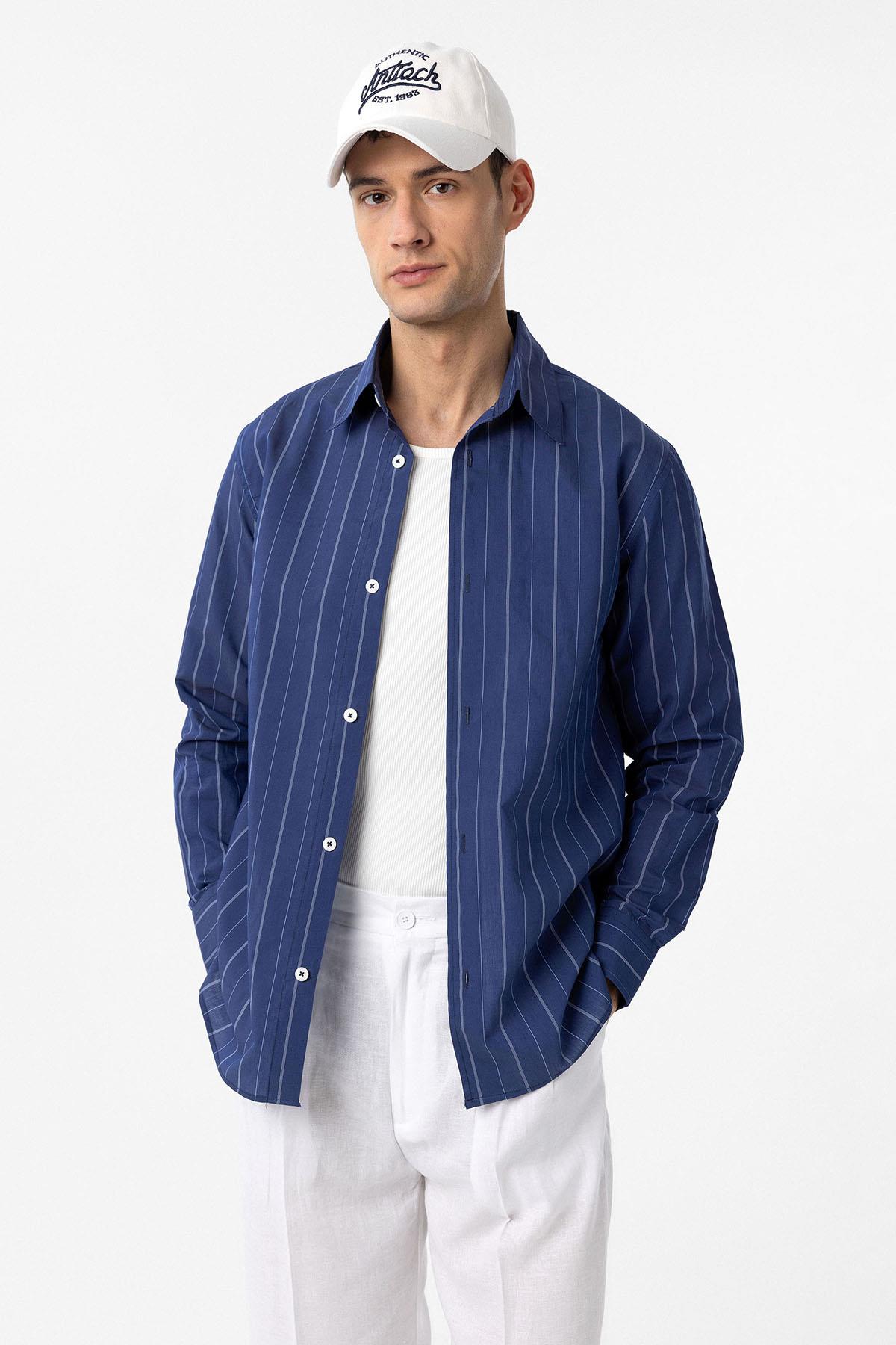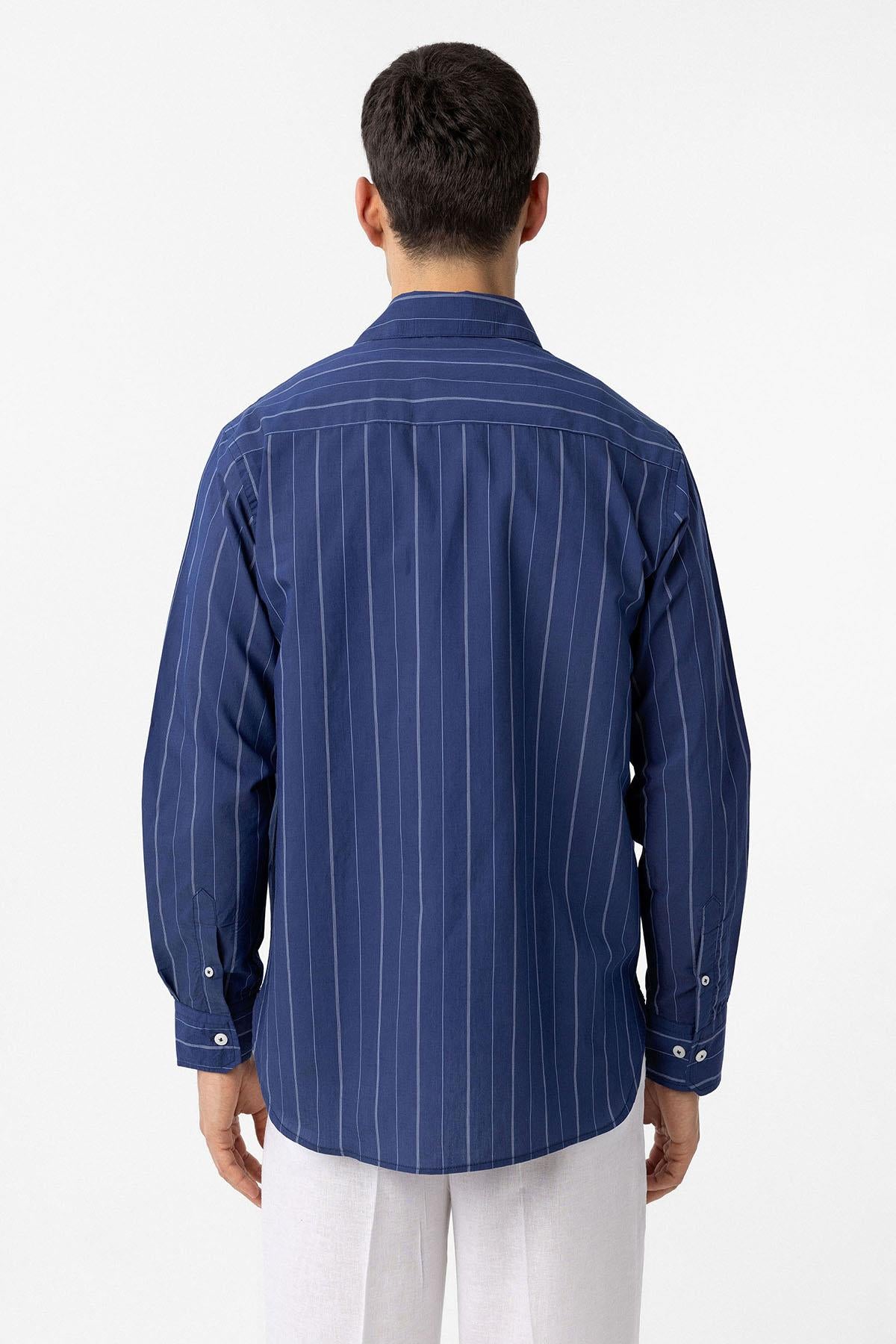 Lacivert Relaxed Çizgili Erkek Gömlek