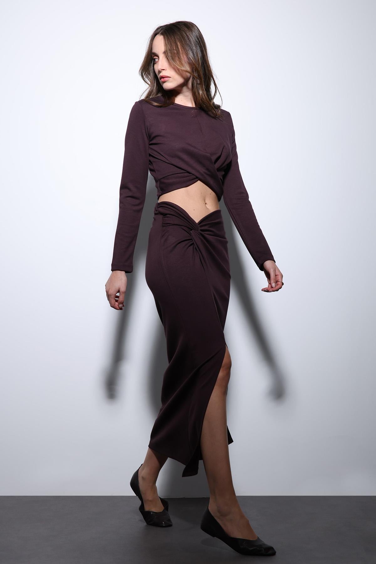 Mürdüm Yırtmaç Detaylı Kadın Etek Takım