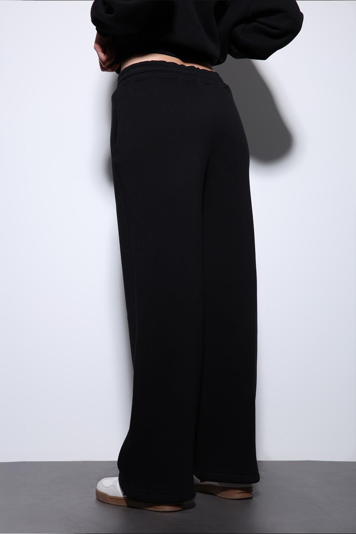 Siyah Basic Ayarlanabilir Paça Kadın Eşofman Altı