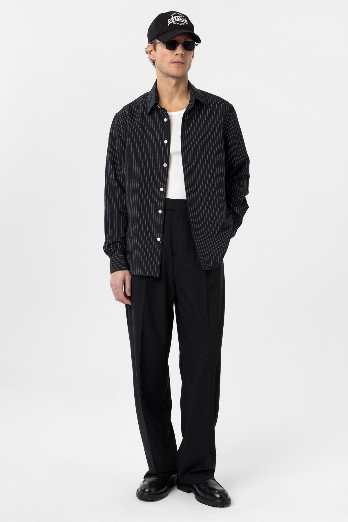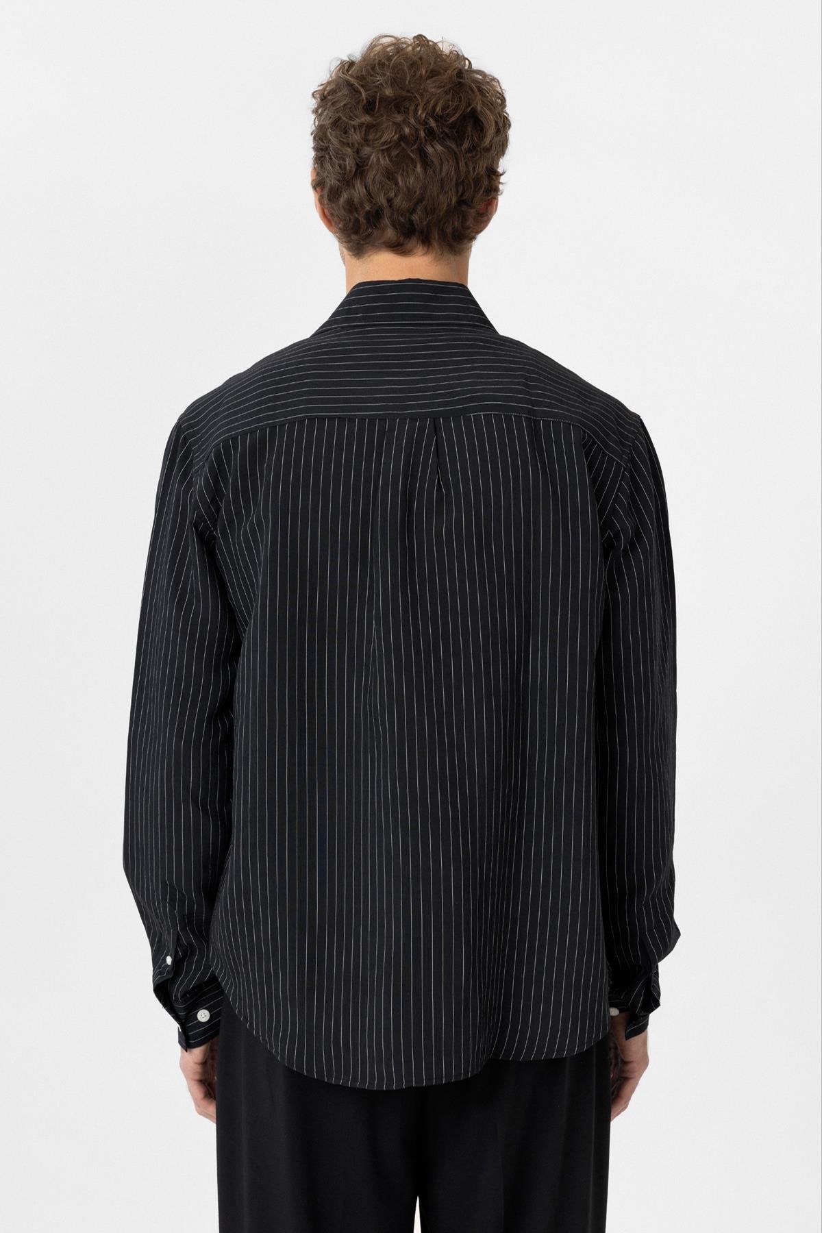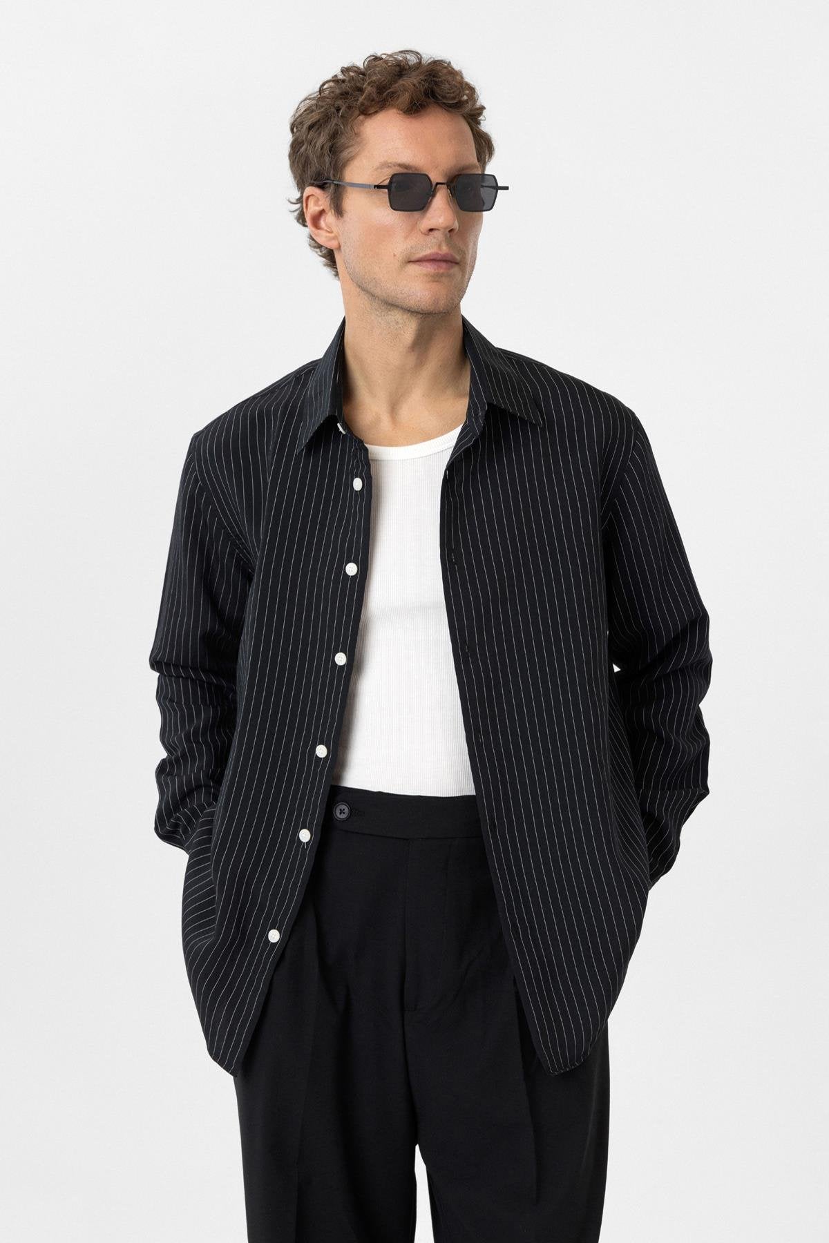 Siyah Modal Kumaş Relax Fit Çizgili Erkek Gömlek