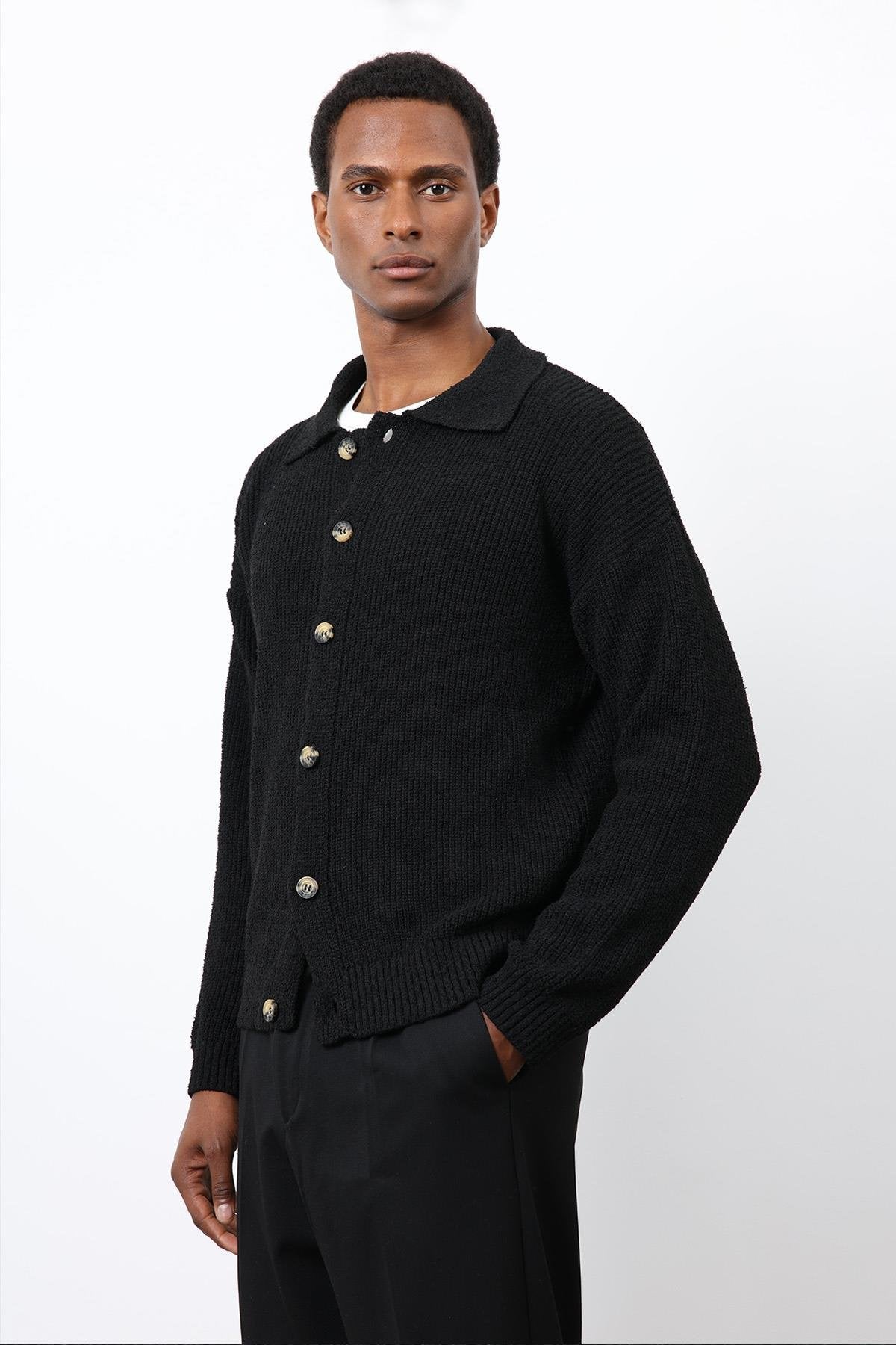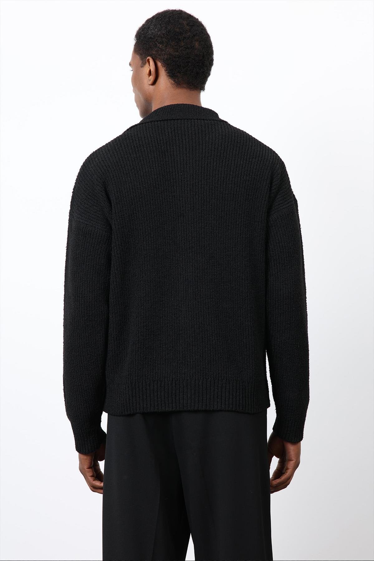 Siyah Örme Triko Erkek Hırka