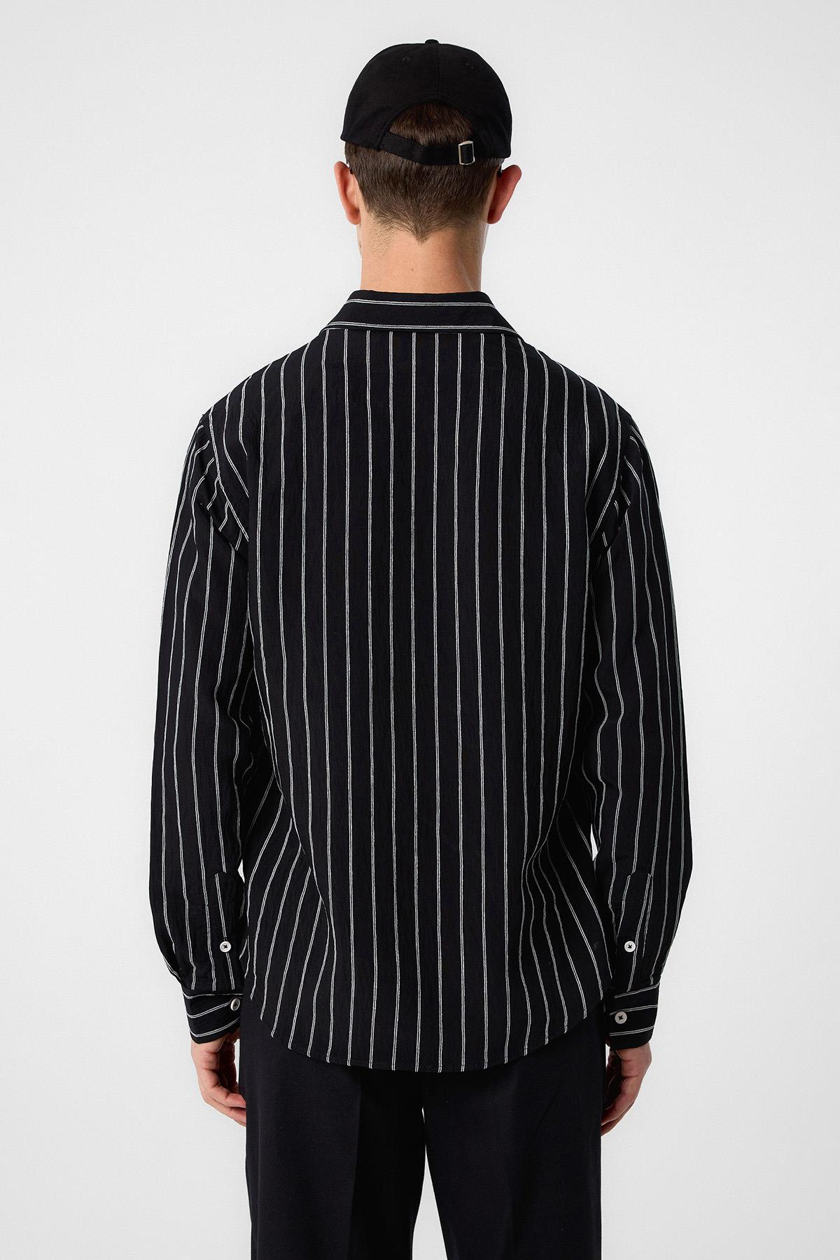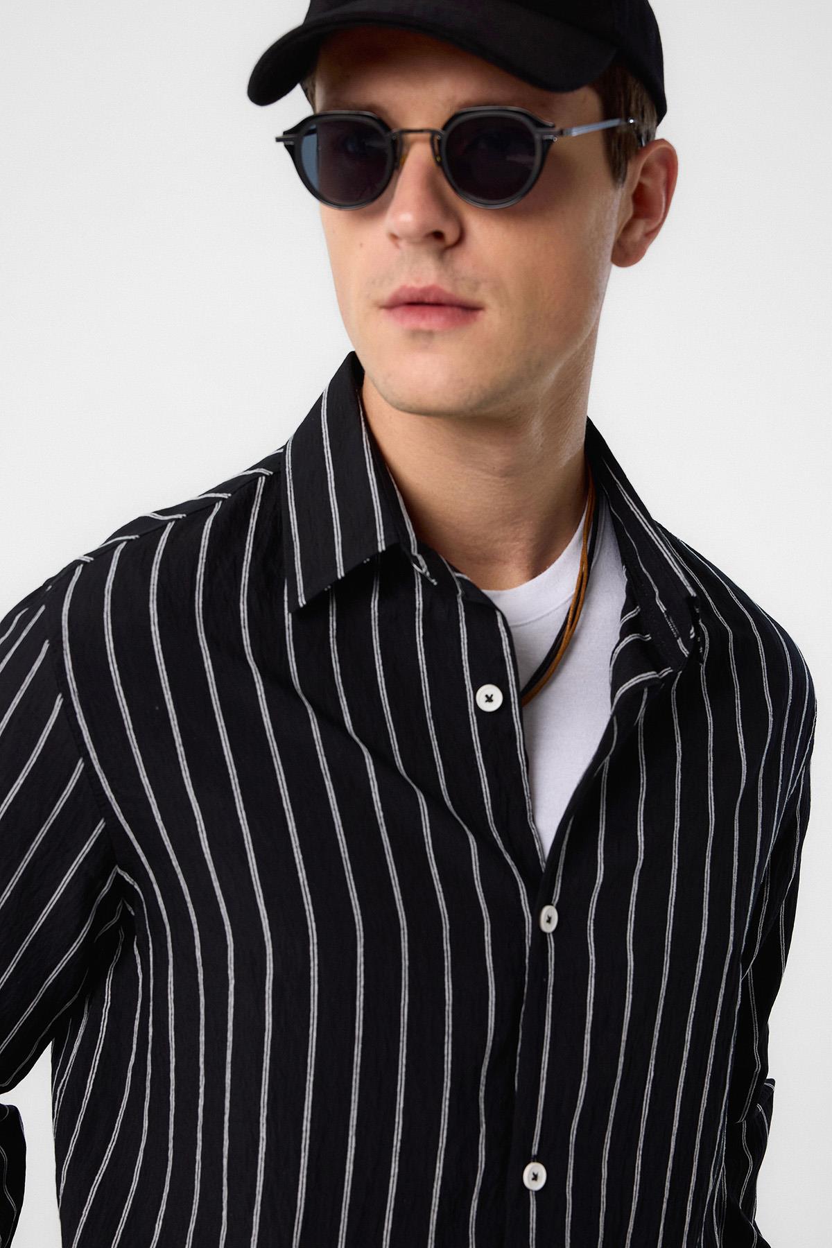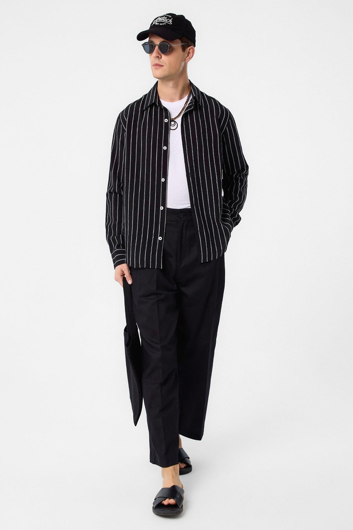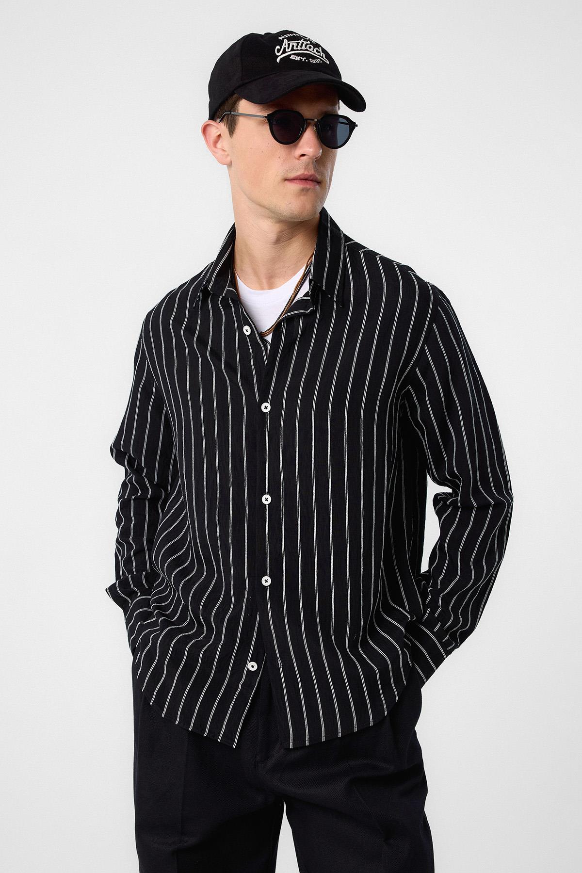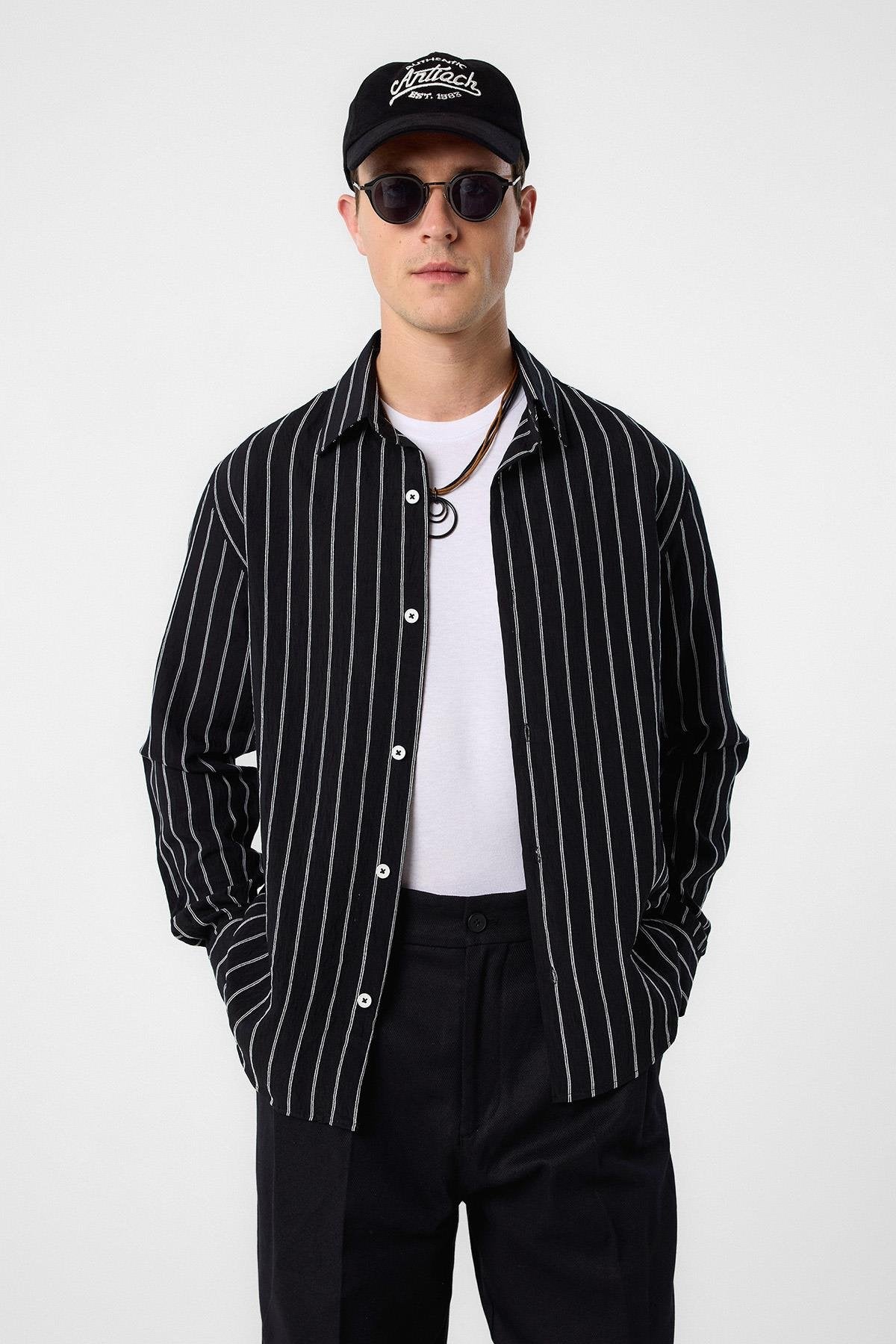 Siyah Relax Fit Çizgili Erkek Gömlek