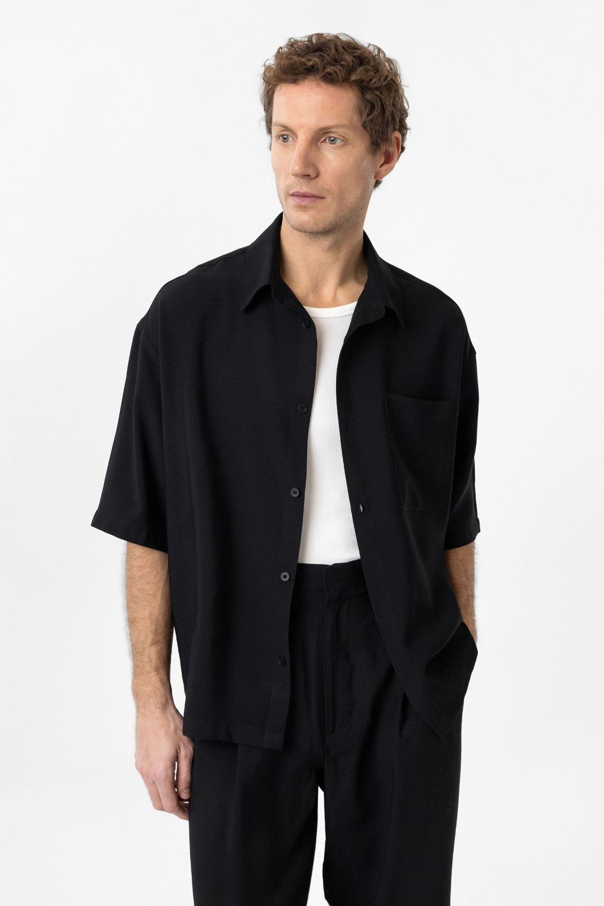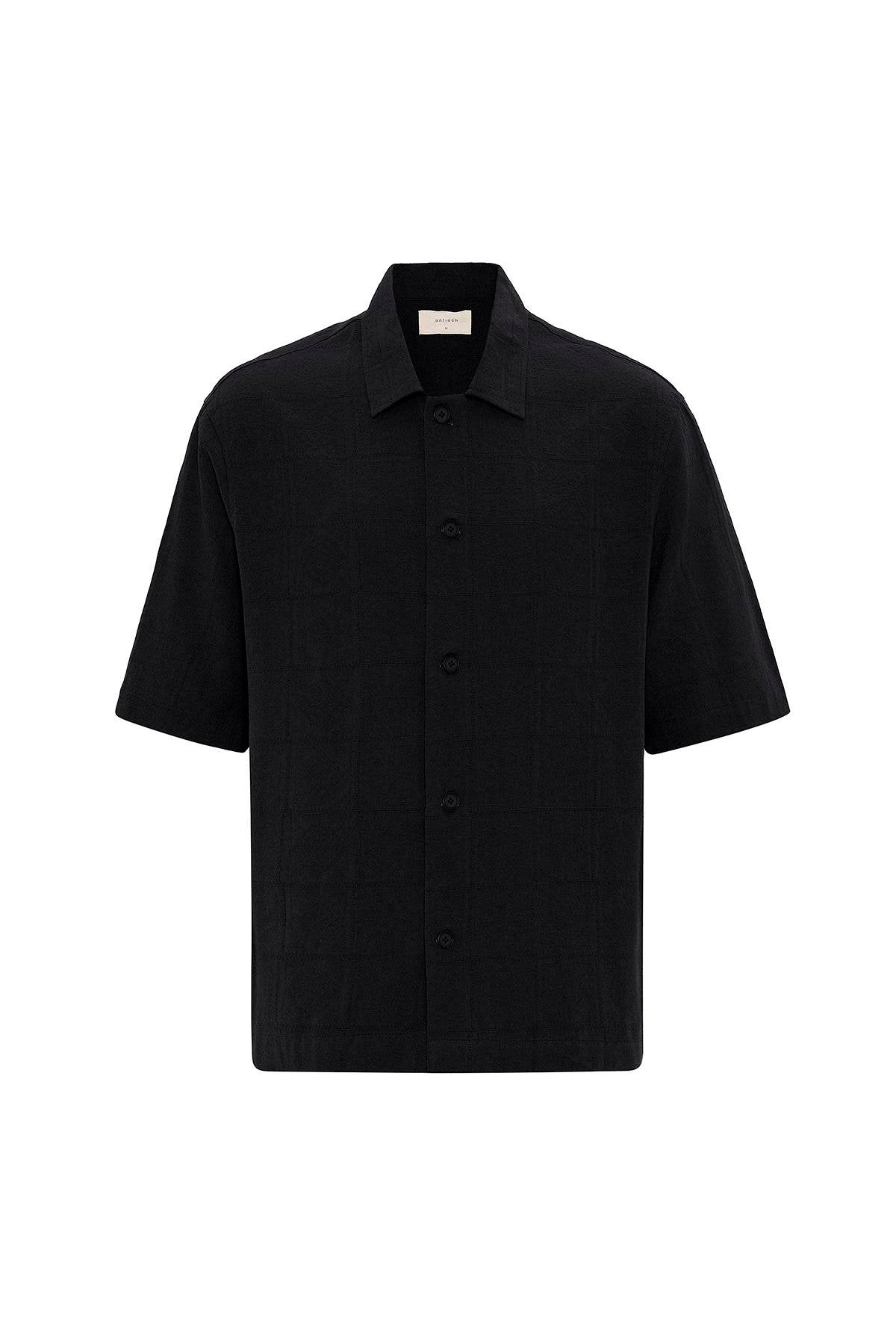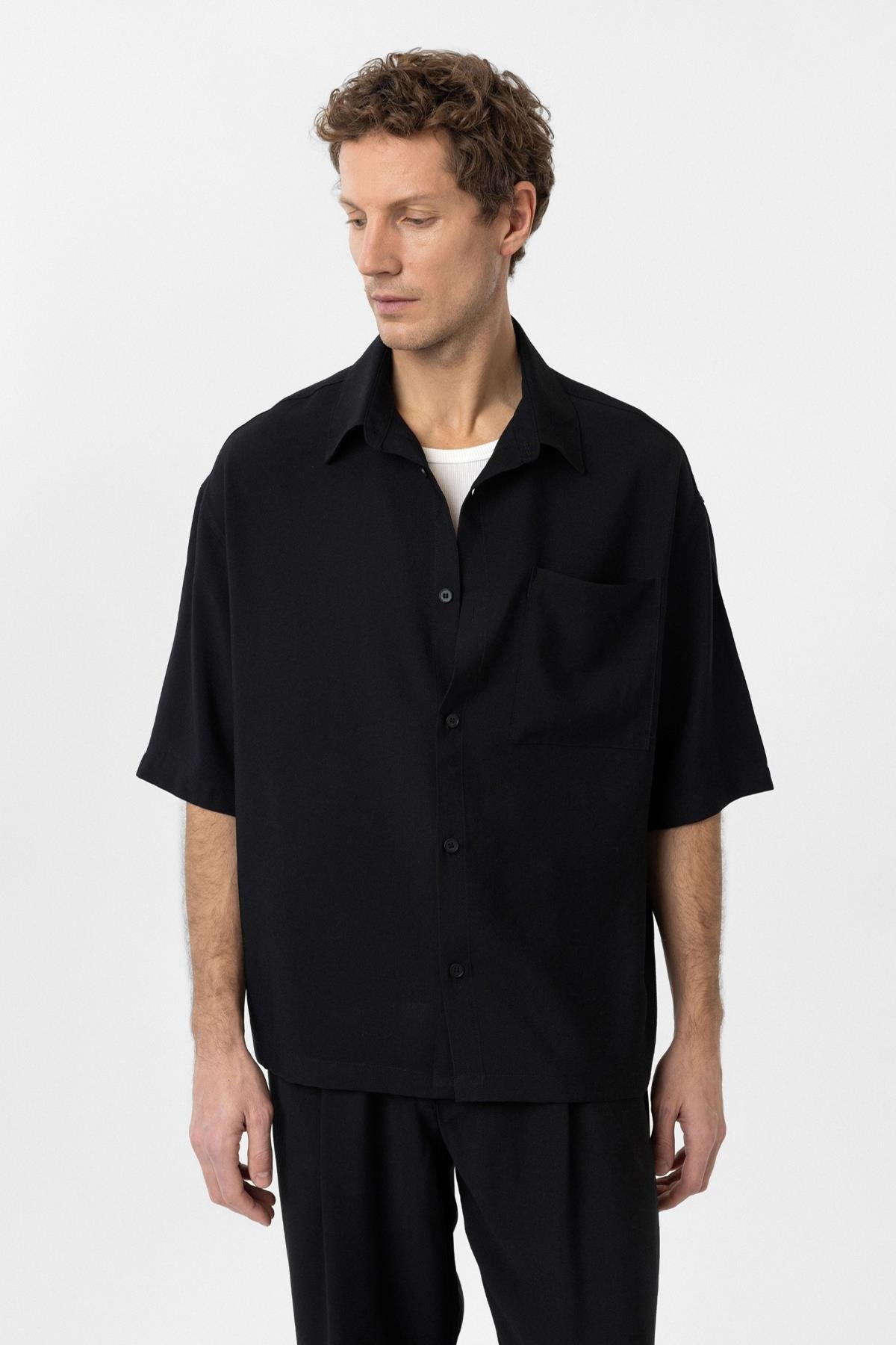 Siyah Relaxed Kısa Kollu Erkek Gömlek