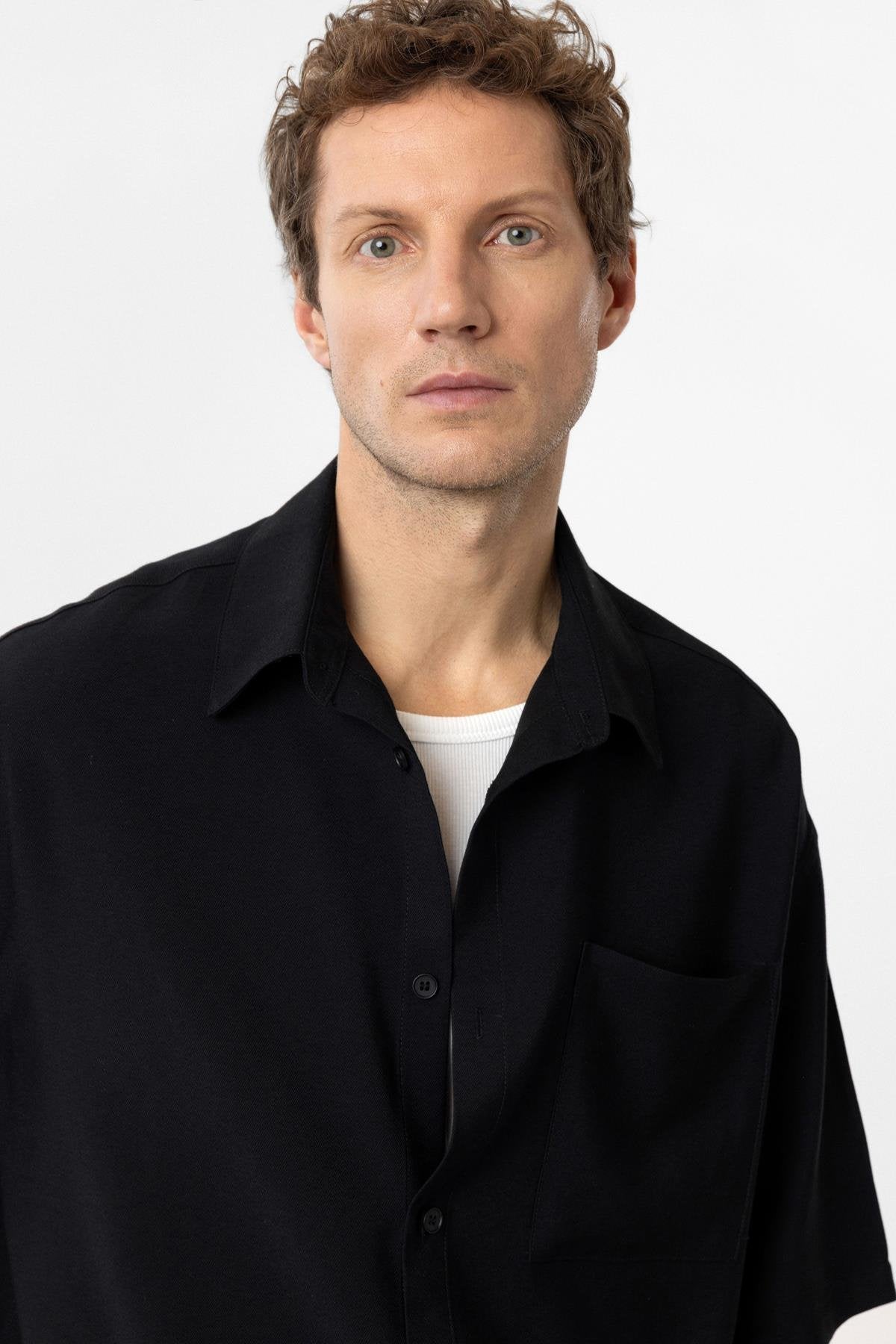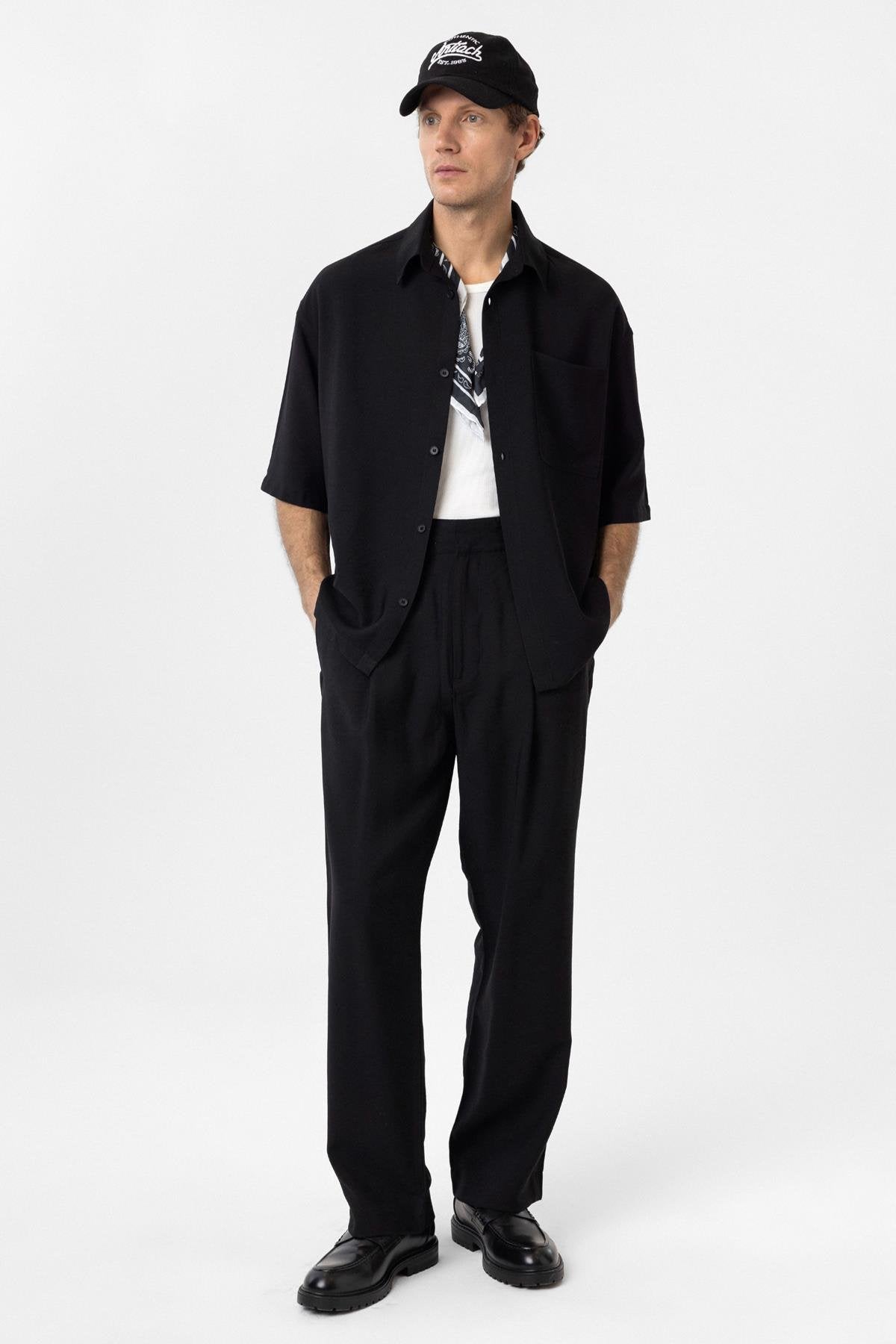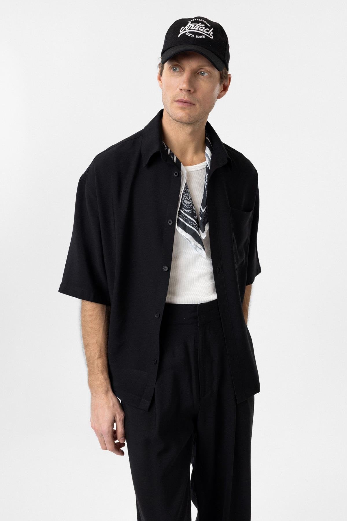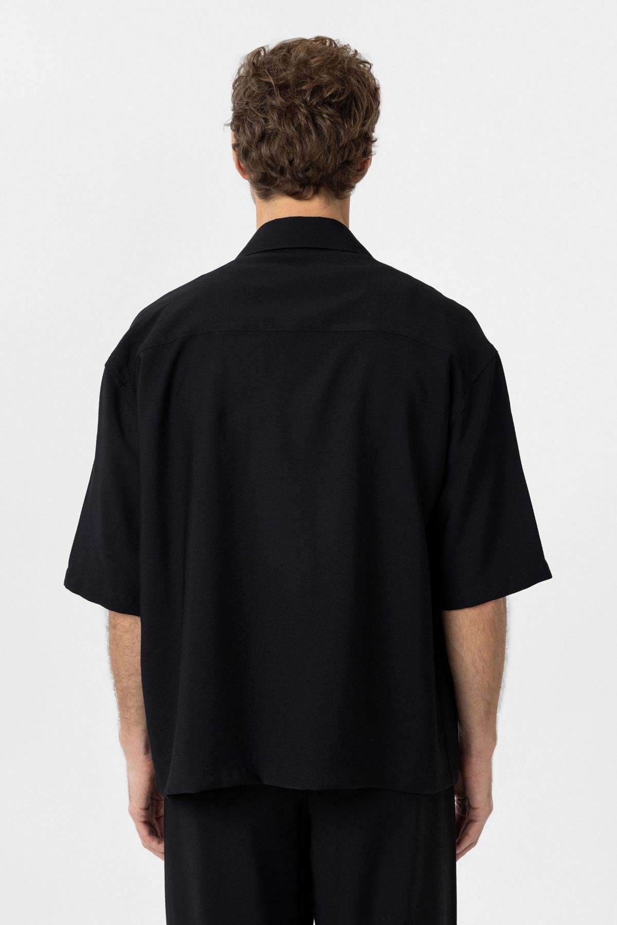 Siyah Relaxed Kısa Kollu Erkek Gömlek