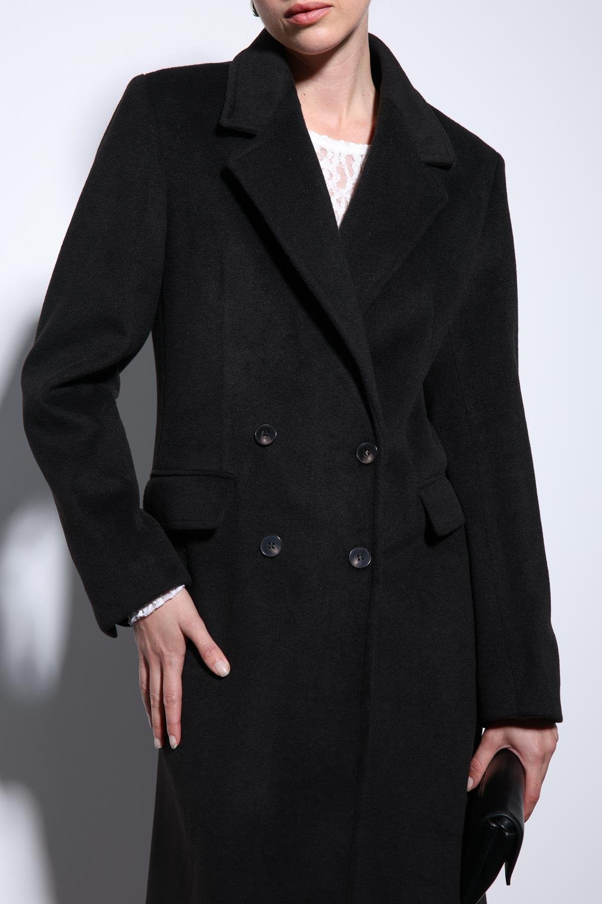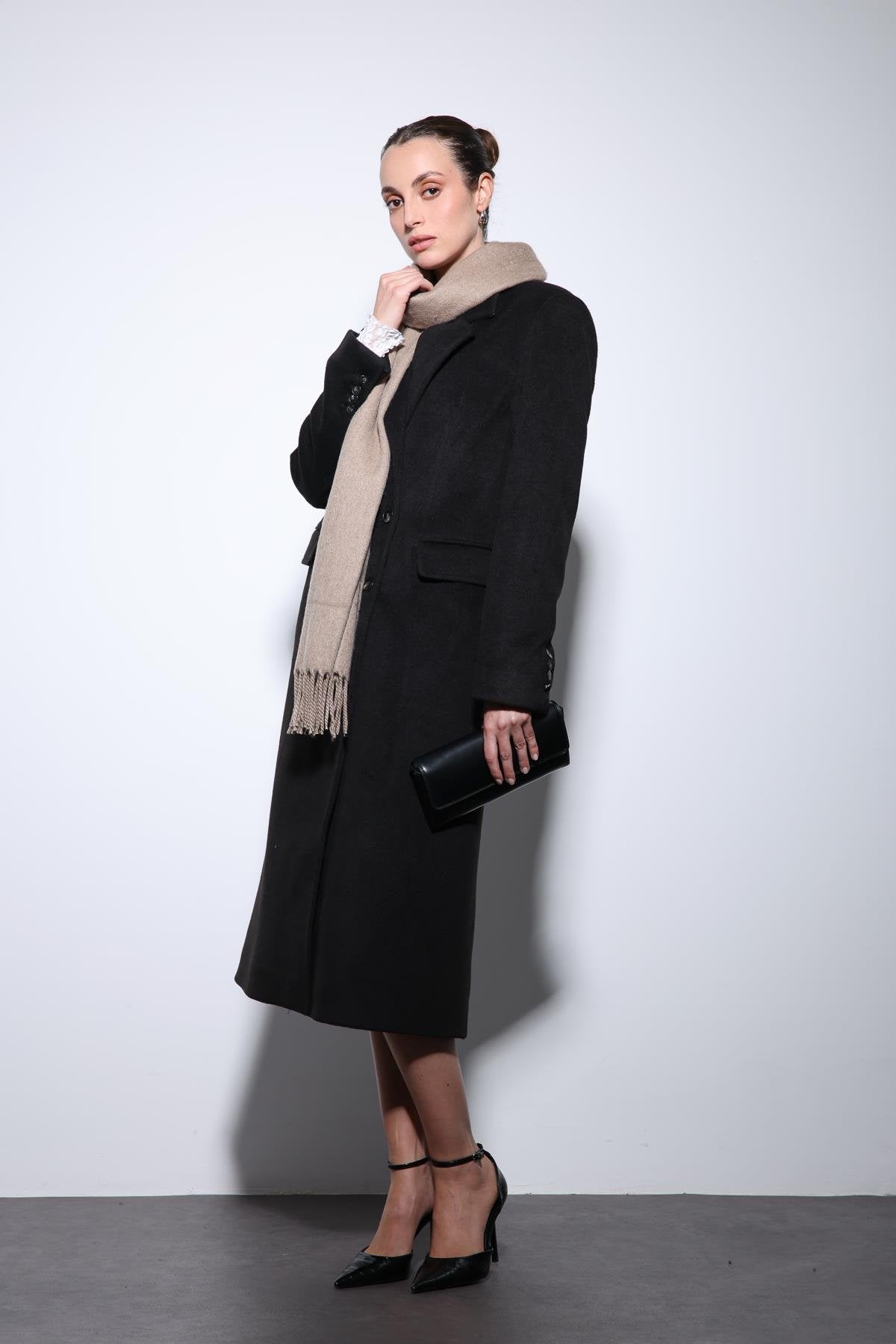 Siyah Yün Karışımlı Kruvaze Kadın Kaban