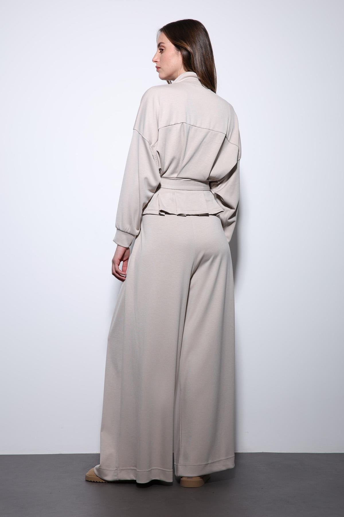 Taş Bel Kemerli Geniş Paça Pantolonlu Takım