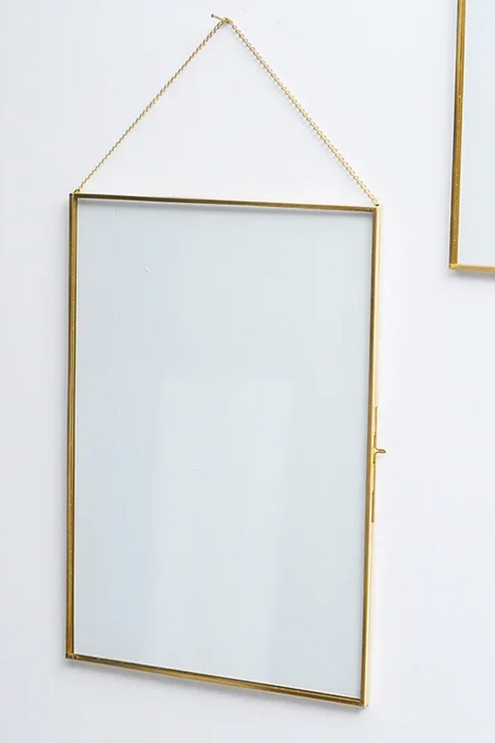Dikey Pirinç Gold Cam Duvar Askılı Fotoğraf Çerçevesi Kapaklı 35x25cm