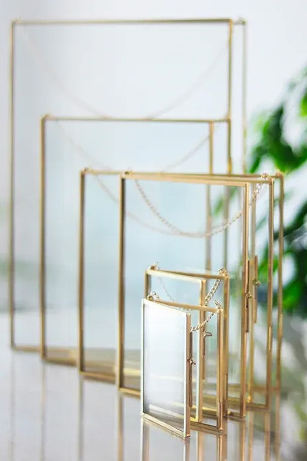 Dikey Pirinç Gold Kapaklı Cam Duvar Askılı Fotoğraf Çerçevesi 20x15cm