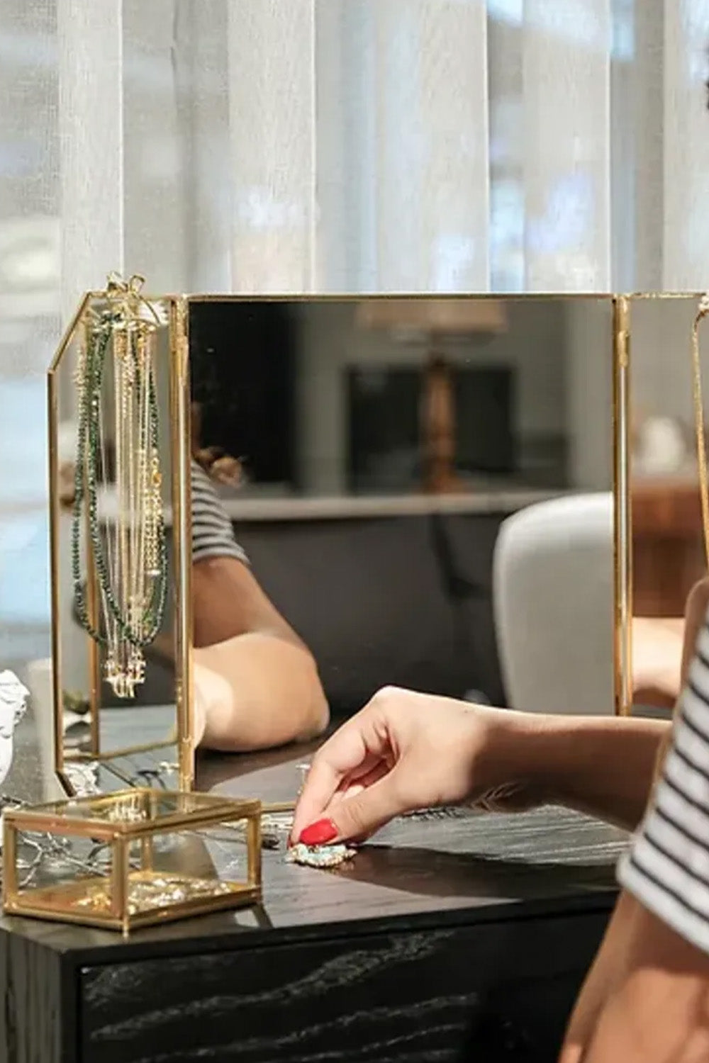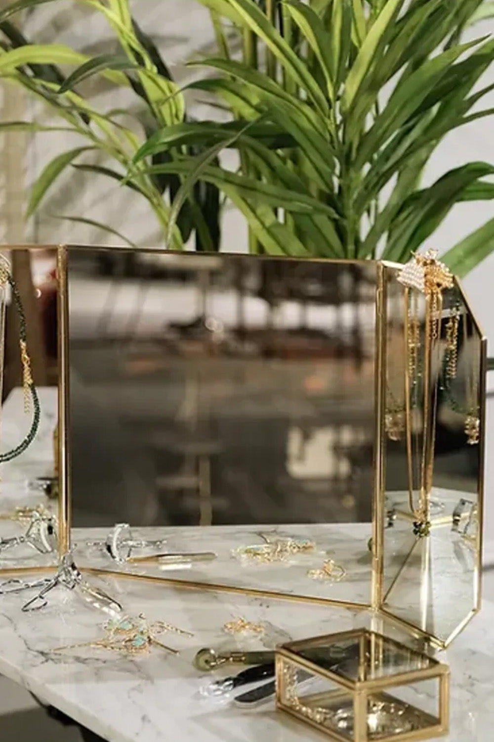 Pirinç Gold Masaüstü Makyaj Aynası 60x30cm
