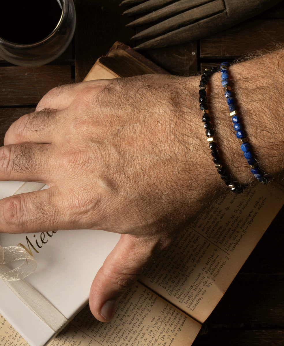 Küp onix ve üçgen kesim hematit kullanılmıştır.