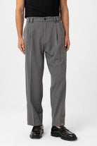Gri Yüksel Bel Relax Fit Pileli Erkek Pantolon