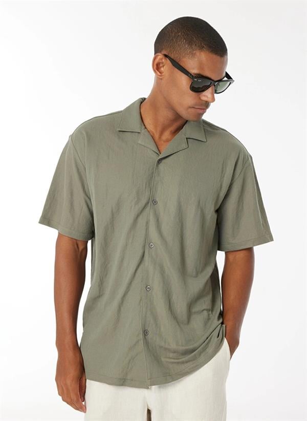 Apaj Yaka Kısa Kollu örme Slim Fit Erkek Gömlek