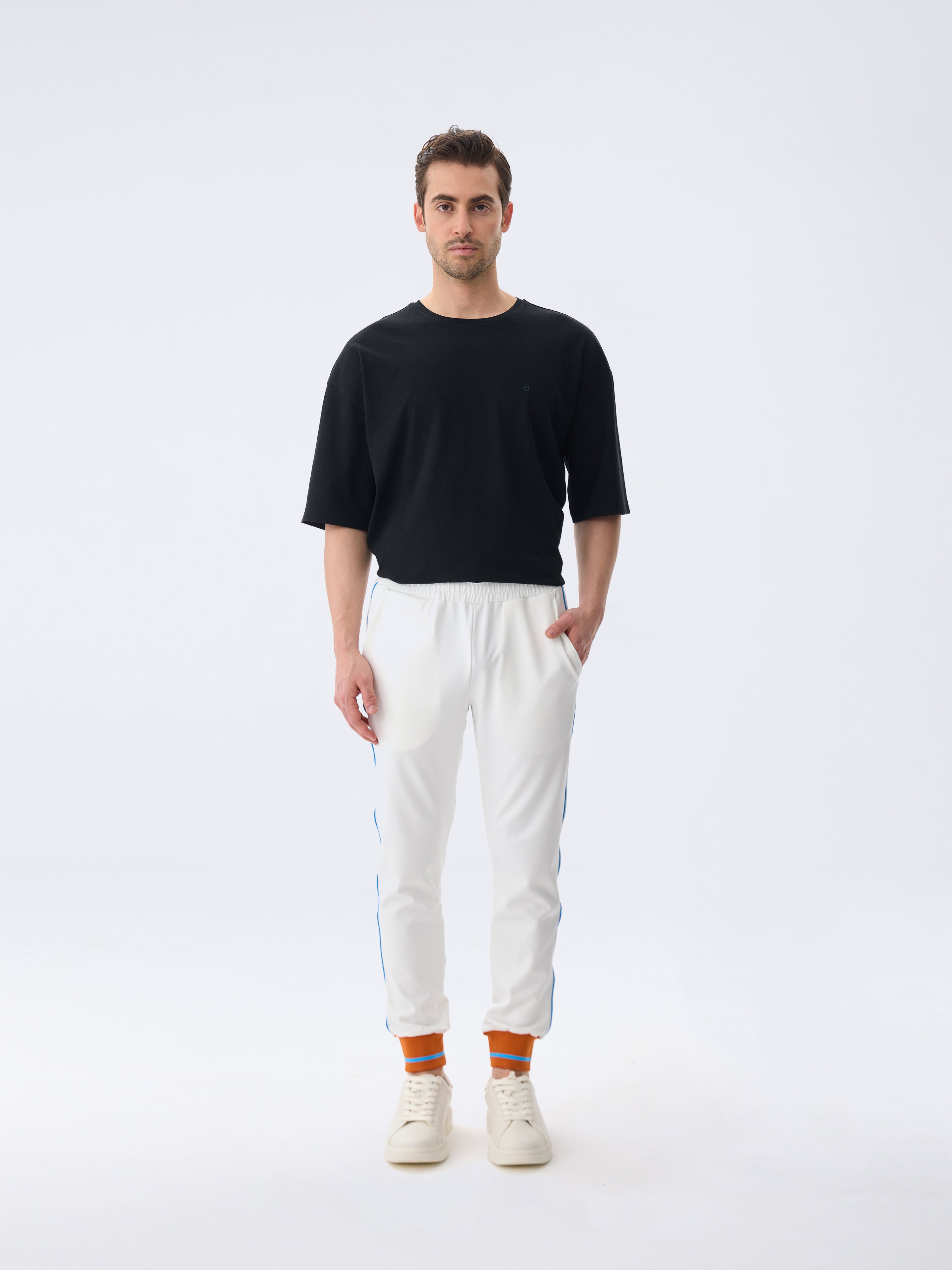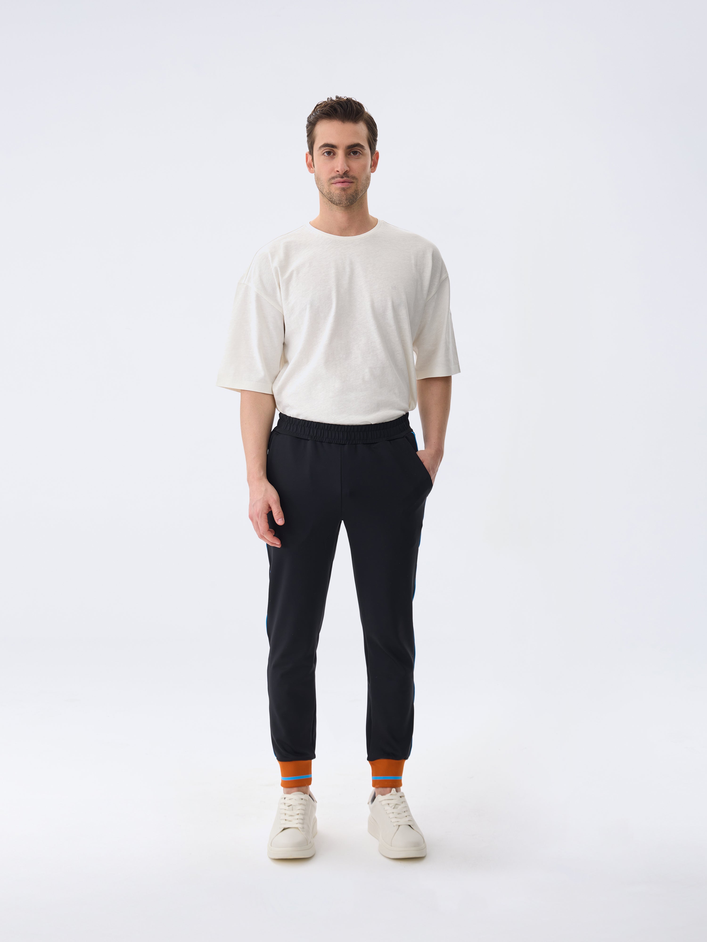 Regular FitDört yöne esneyen özel kumaş: Vücutla birlikte doğal hareket eder, her adımda özgürlük hissi sağlar.• Yumuşak ve hafif kumaş dokusu: Gün boyu konfor ve esnek bir oturuş sunar.• Yan dikişlerde kontrast biyeler: Modern, dinamik ve dikkat çekici bir görünüm oluşturur.• Elastik bel bandı ve ayarlanabilir bağcık detayı: Kişiye özel, rahat ve güvenli bir uyum sağlar.• İki yan cep: Günlük kullanım için pratik saklama alanı sunar.• Sağ cepte gizli fermuarlı cep: Değerli eşyalar için güvenli depolama sağlar.• Nefes alabilir kumaş yapısı: Uzun süreli kullanımlarda ferahlık sağlar.• Kolay bakım özelliği: Ütü gerektirmeyen, her zaman giyilmeye hazır yapı.• Çok yönlü kullanım: Spor salonundan şehir yaşamına, seyahatlerden günlük kullanıma kadar ideal konfor sağlar.