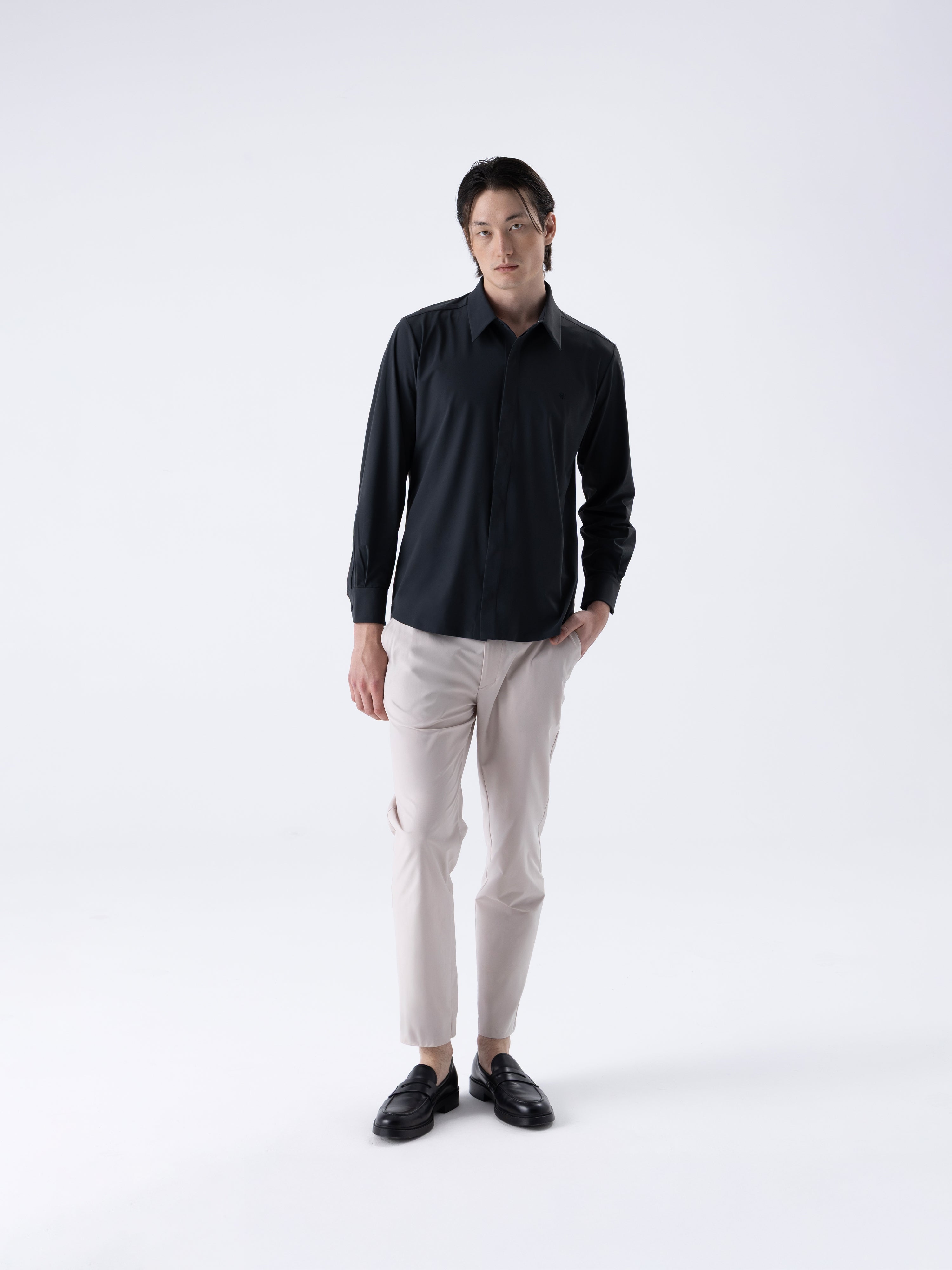 Regular FitDört yöne esneyebilen kumaş: Maksimum hareket özgürlüğü ve konfor sağlar.• Hafif ve dayanıklı kumaş yapısı: Gün boyu rahatlık sunarken formunu korur.• Nefes alabilir yapı: Kol altındaki lazer kesim perfore delikler hava dolaşımını artırır ve ferahlık sağlar.• Snap (çıtçıt) düğmeler: Pratik kullanım sunar; patın altında gizli tasarımıyla sade bir görünüm oluşturur.• Yumuşak yüzey dokusu: Cilde nazik temas sağlar, uzun süreli kullanımda konforu artırır.• Yüksek geri toplama özelliği: Gömleğin formunu koruyarak her zaman düzenli bir görünüm sunar.• Ütü gerektirmeyen kumaş teknolojisi: Gün boyu bakımlı bir görünüm sağlar.• Yapıştırmalı etek ucu: Dikişsiz bitişiyle modern ve minimalist bir siluet oluşturur.