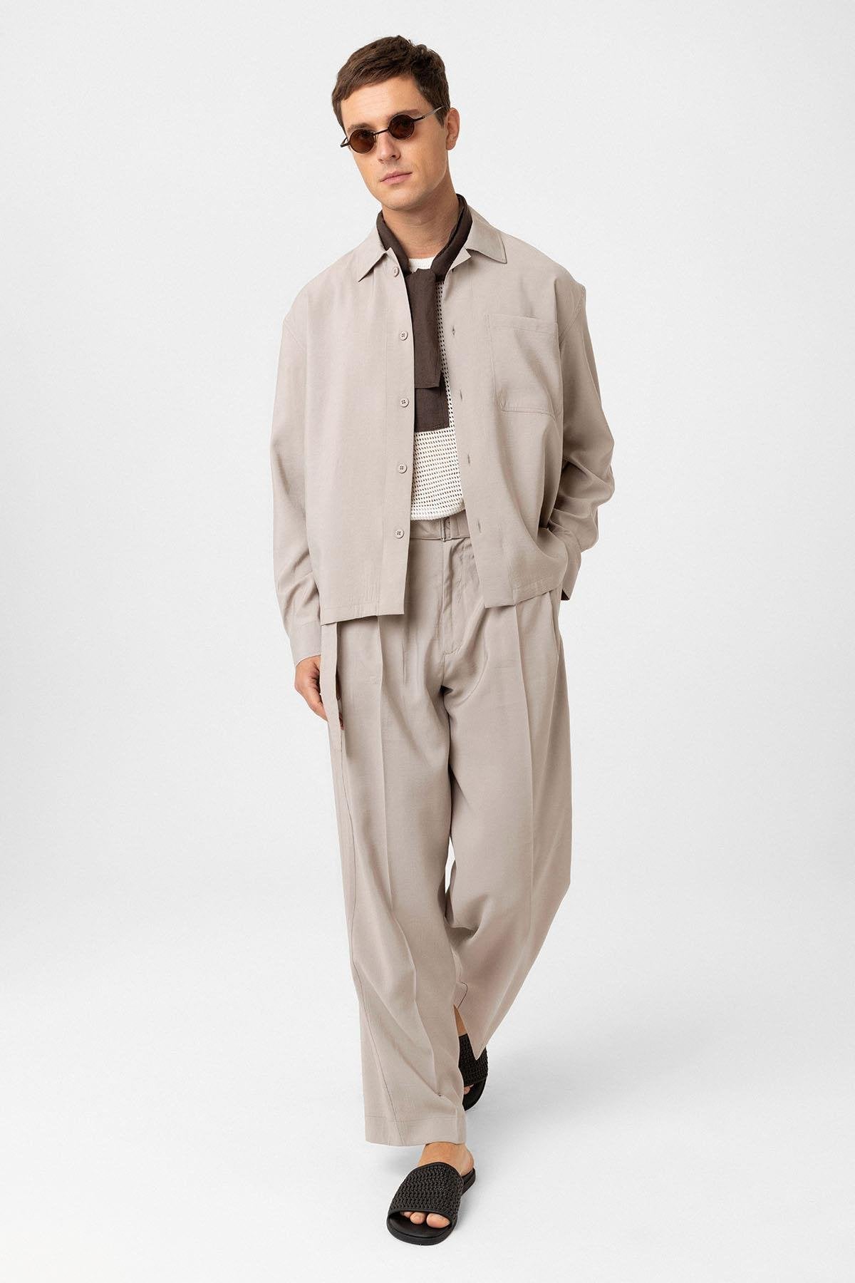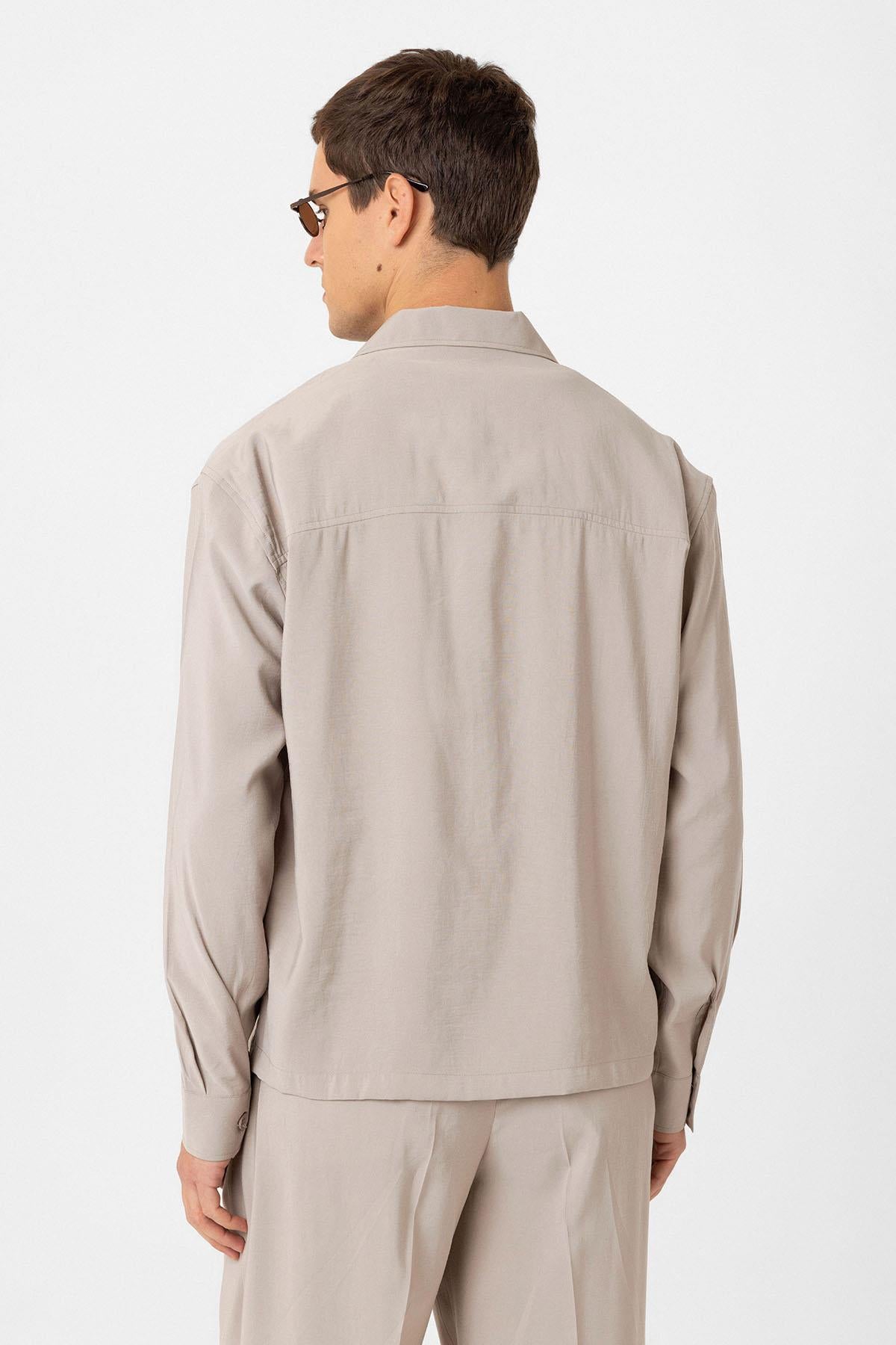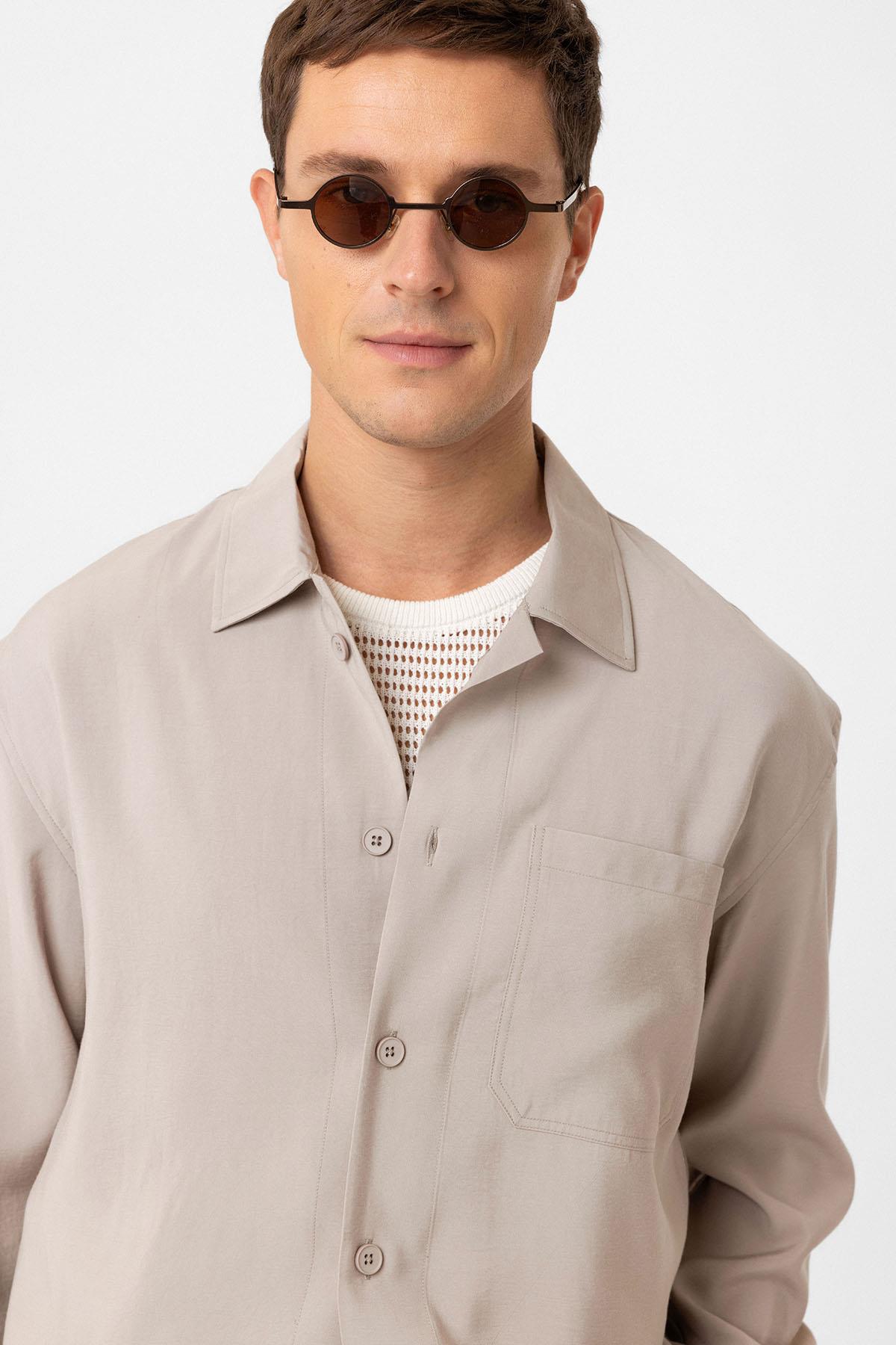 Bej Relax Fit Modal Kumaş Erkek Gömlek