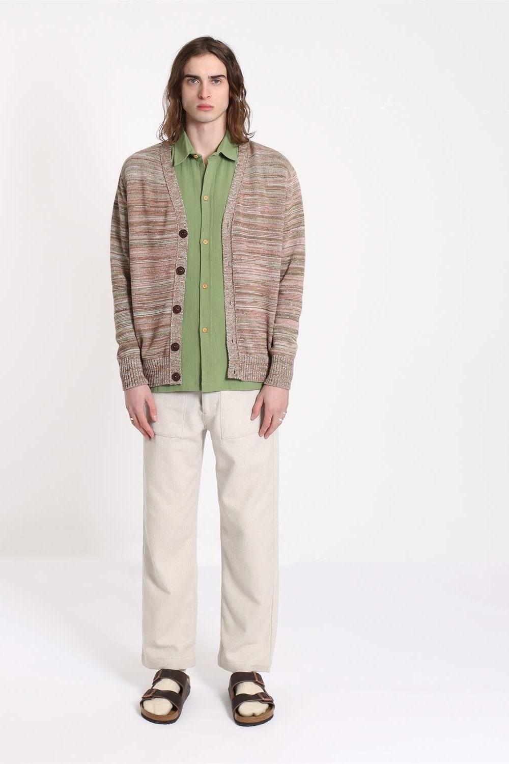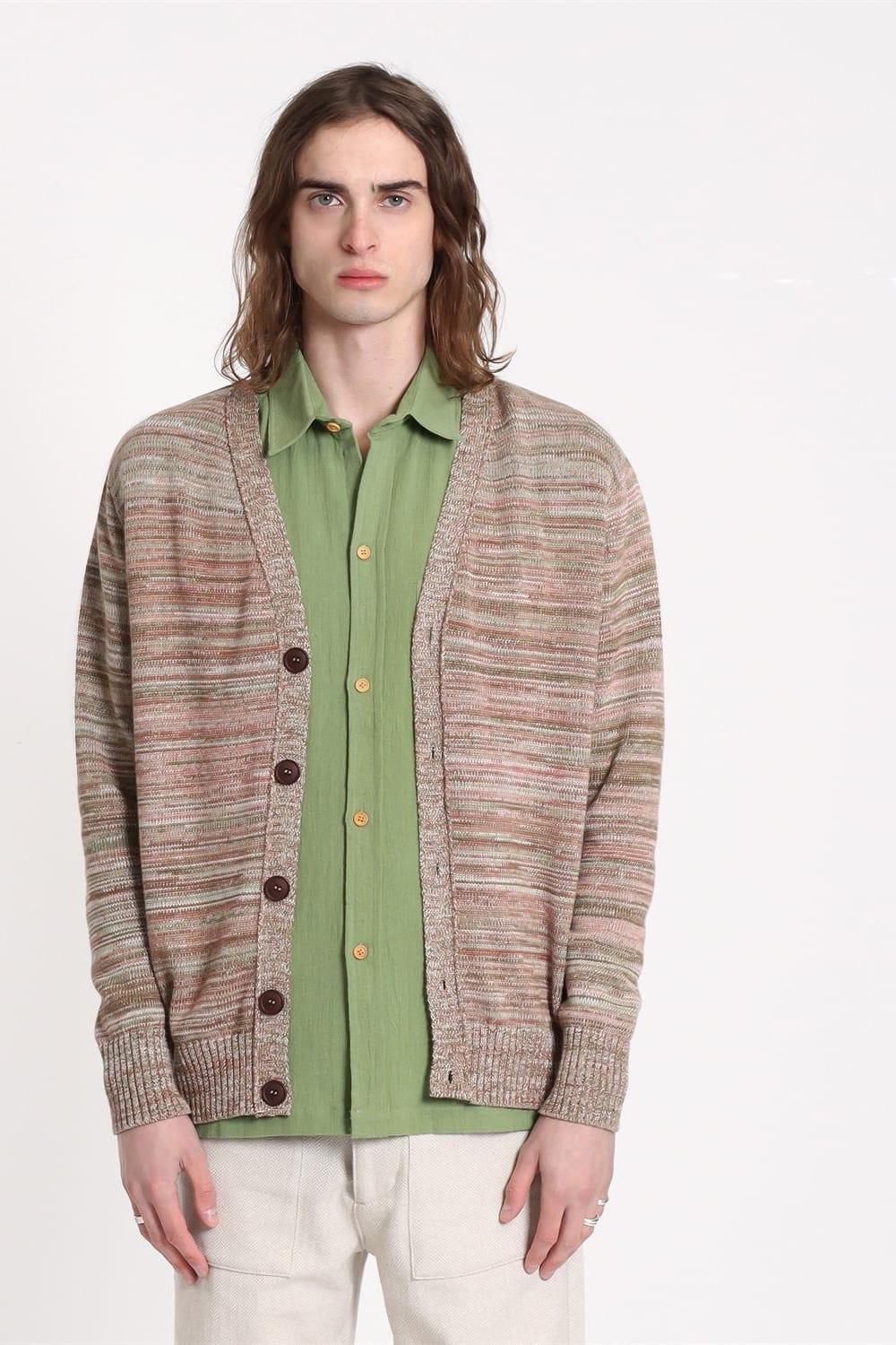 Far Afield Buckley Cardigan Twisted Yarn V Yaka Standart Kesim %100 Organik Pamuk Melanj Erkek Triko Hırka