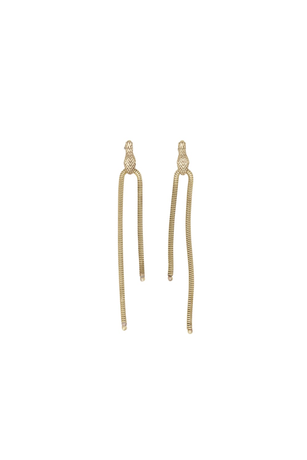 El yapımı pirinç yılan küpeler, brassghetti zincirlerle..
