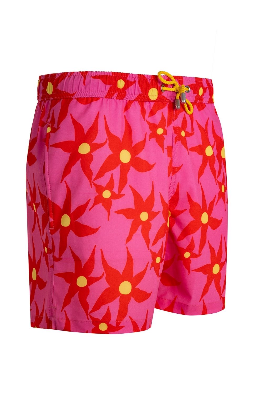 Tatilde, sahilde veya havuz kenarında maksimum konfor arayanlar için özel olarak tasarlandı! Esnek (streç) kumaşı, hareketlerinizi kısıtlamadan vücudunuza mükemmel uyum sağlarken, hızlı kuruma ve yumuşak dokusu sayesinde gün boyu rahatlık sunar. Canlı desenleriyle enerjinizi yansıtan bu şort, elastik bel bandı ve ayarlanabilir bağcıklarıyla ekstra konfor sunarak her anınıza uyum sağlar.