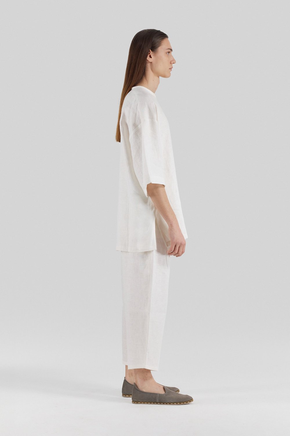 Ekru, oversize pantolon. Ayarlanabilir elastik belli. Hafif keten dokusu ve nefes aldıran kumaşıyla rahatlığı ve şıklığı bir arada sunar.