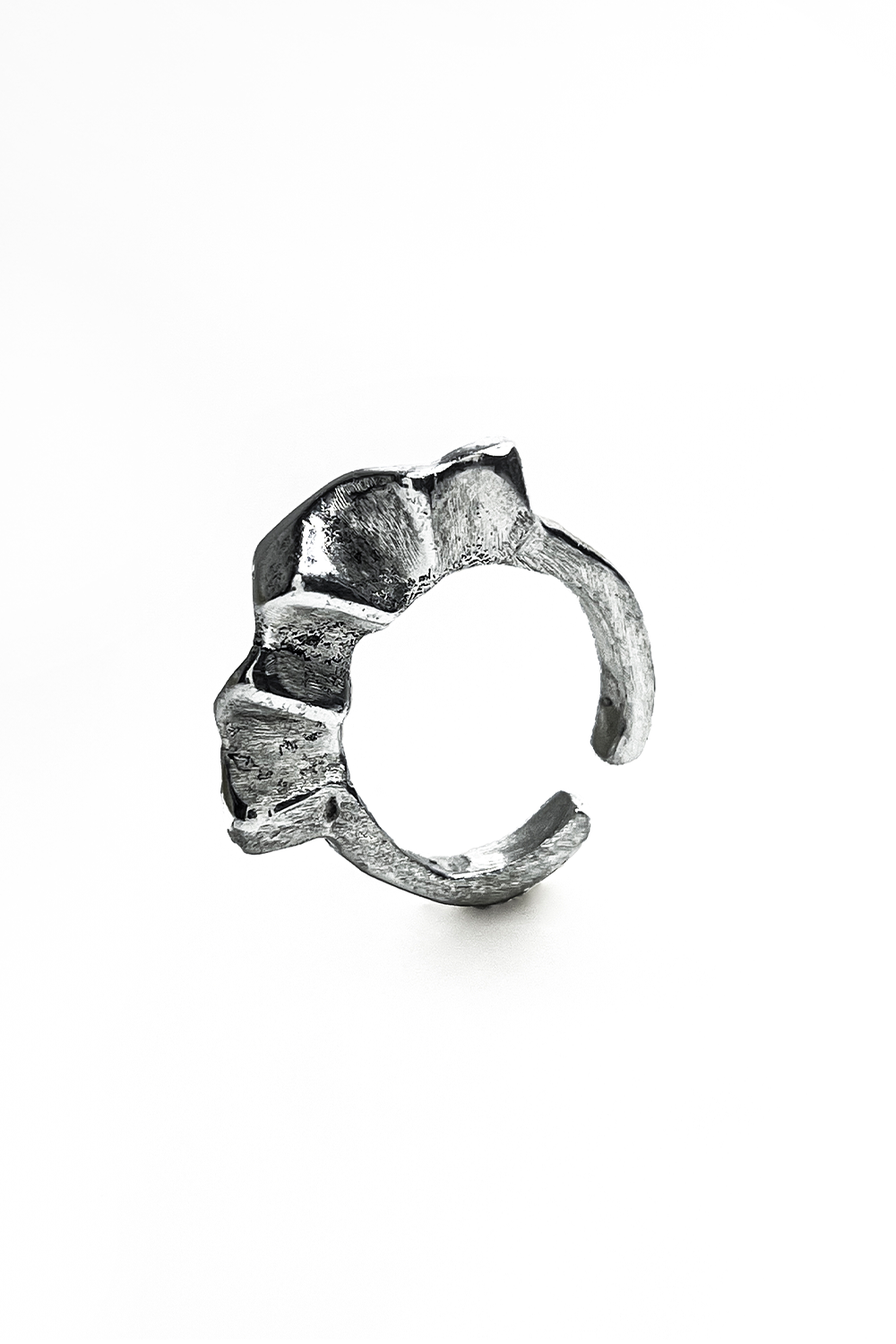 Gümüş, terimsel adıyla Argentum elementinin halleri katı/sıvı olarak incelenmiş ve döküm mumunda form bulmuştur. İsmini, Argentum’un temsil ettiği 5 sayısından alır; bu sayı insanın fiziksel doğasını ve dünyadaki mücadelesini simgeler. Formu ise, insan vücudunu ve doğadaki elementlerin uyumunu yansıtır. Bu nesne 925 ayar gümüşten dökülmüş ve tasarlanmıştır.