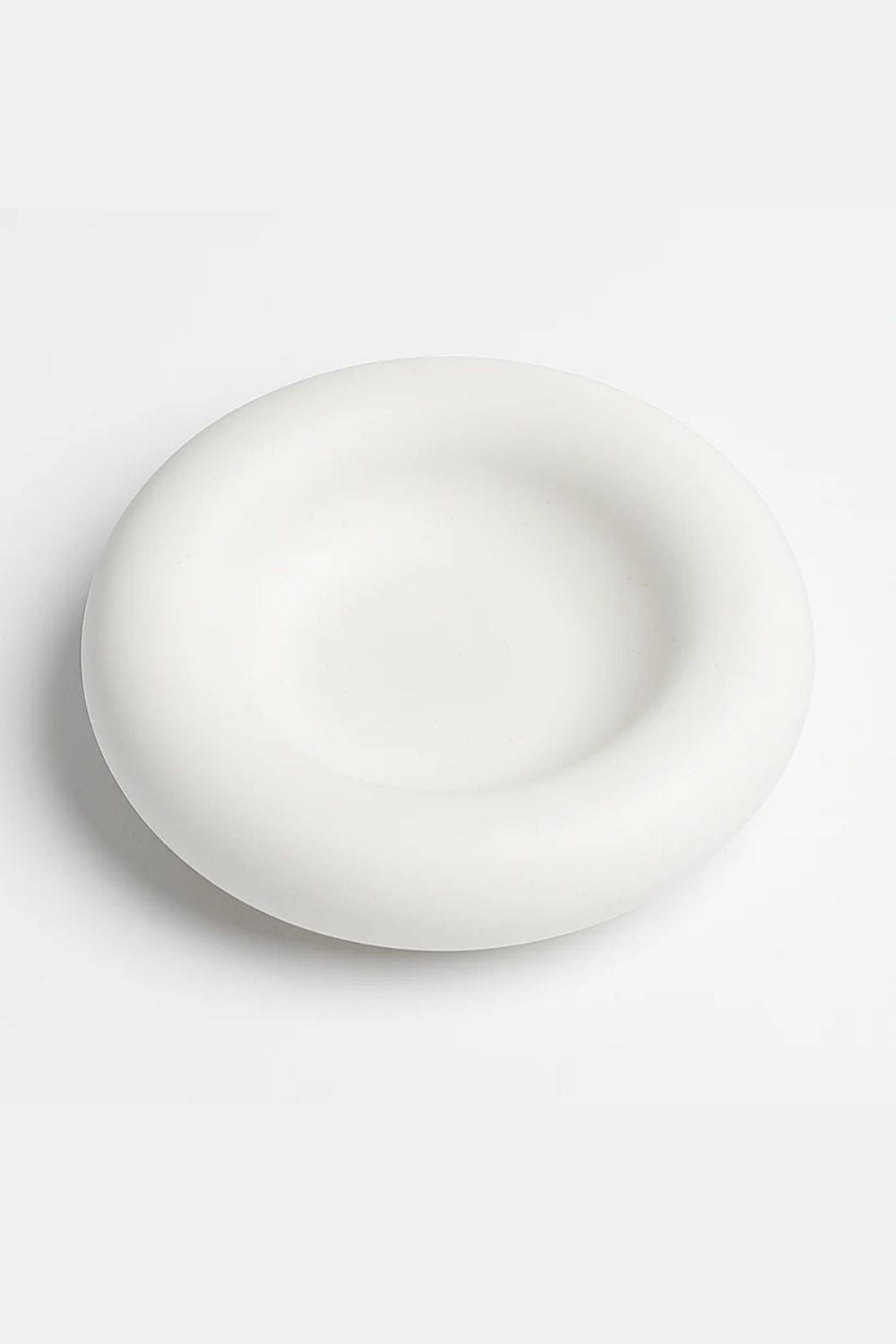 Renk / DokuMat beyaz. Dış formu tamamen yuvarlaktır, merkezde derinleşen iç bükey alan bulunur. Yüzey taş hissi verecek şekilde yumuşak ve pürüzsüzdür.