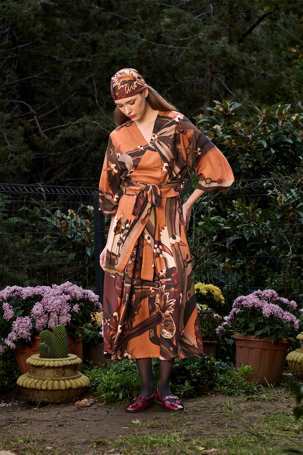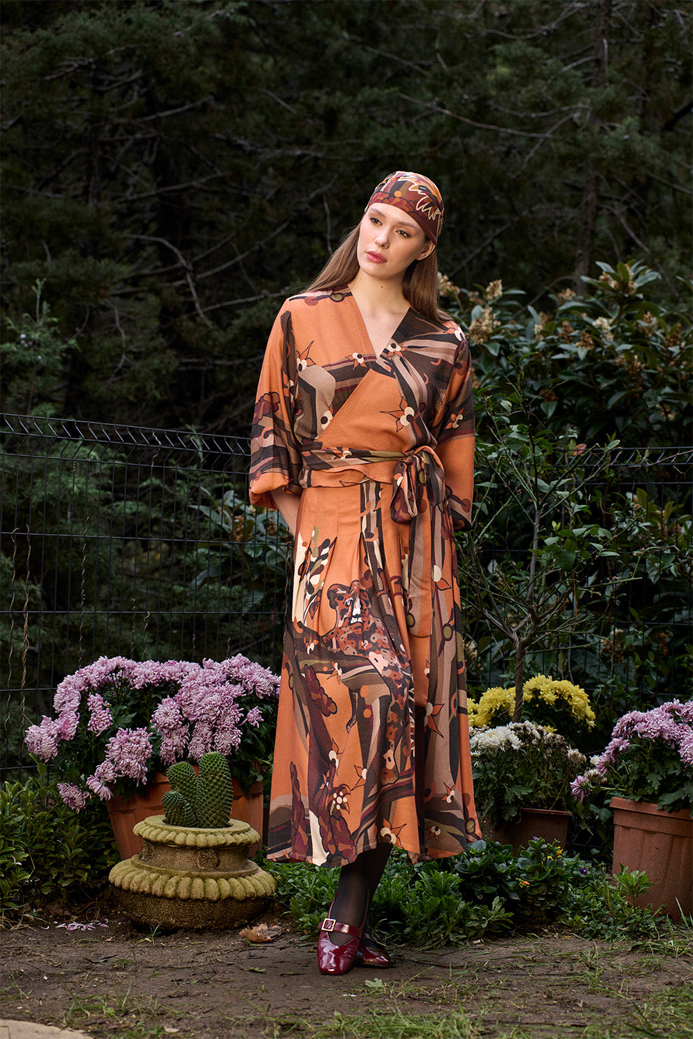 Kahve Kaplan Desenli Pile Detaylı Uzun Etek
