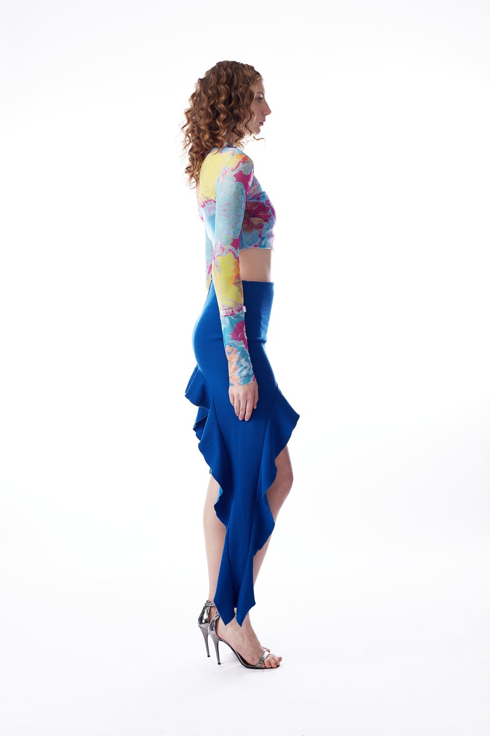 Yanları Fırfır Detaylı Asimetrik Mini Etek